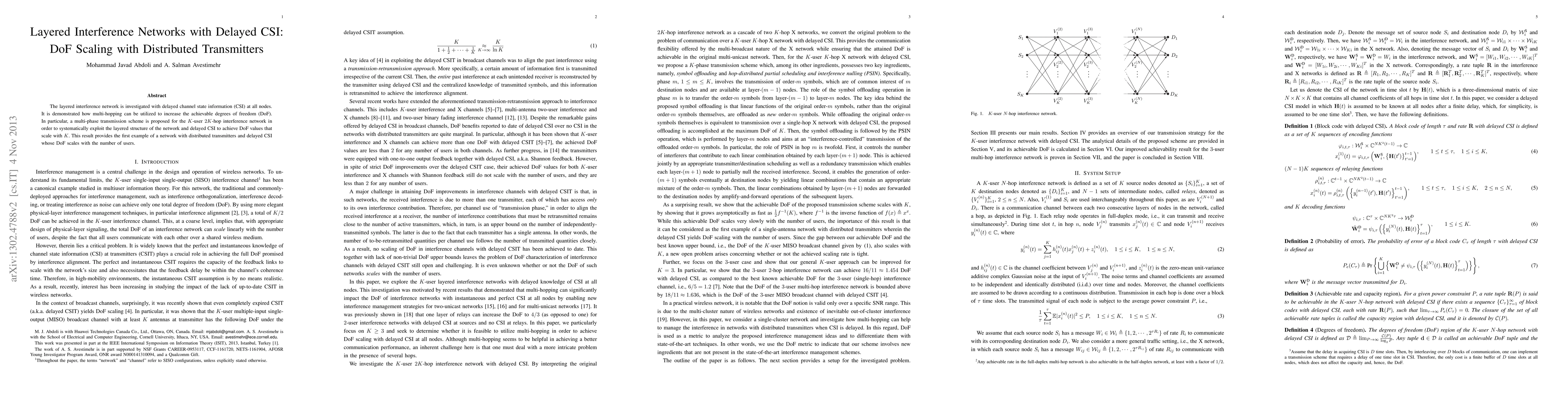 This paper explores layered interference networks with delayed channel state information (CSI) and demonstrates how multi-hopping can enhance achievable degrees of freedom (DoF). It proposes a multi-phase transmission scheme for a $K$-user $2K$-hop network, achieving DoF scaling with $K$ and marking the first such example for networks with distributed transmitters and delayed CSI.