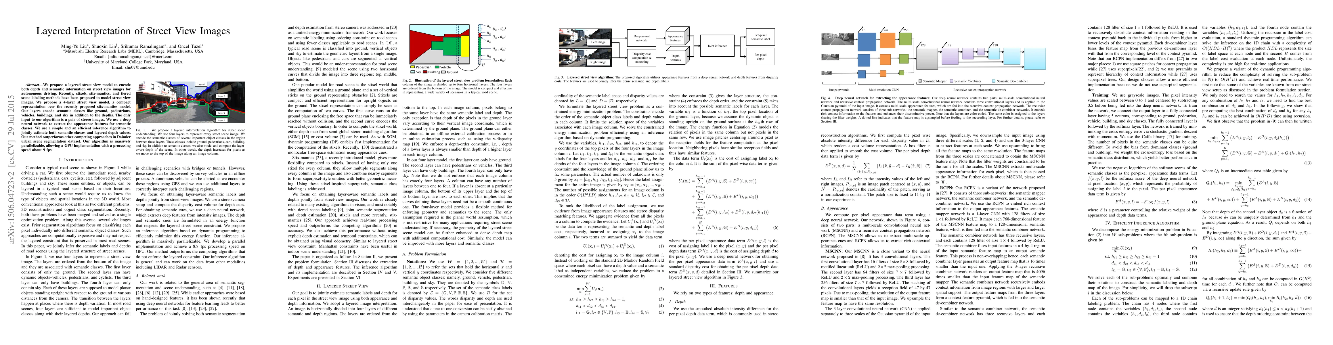 This paper introduces a 4-layer street view model that encodes both depth and semantic information for autonomous driving, outperforming other methods on the Daimler urban scene segmentation dataset. The model uses stereo images and a deep neural network to extract features, achieving a processing speed of about 9 fps on a GPU.