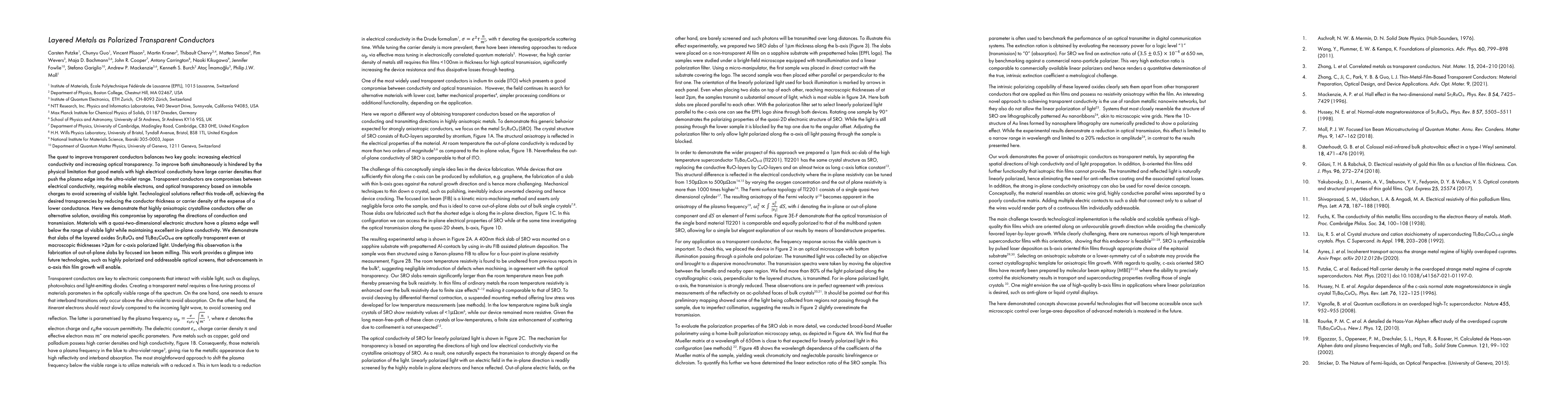 The quest to improve transparent conductors balances two key goals: increasing electrical conductivity and increasing optical transparency. To improve both simultaneously is hindered by the physical limitation that good metals with high electrical conductivity have large carrier densities that push the plasma edge into the ultra-violet range. Transparent conductors are compromises between electrical conductivity, requiring mobile electrons, and optical transparency based on immobile charges to avoid screening of visible light. Technological solutions reflect this trade-off, achieving the desired transparencies by reducing the conductor thickness or carrier density at the expense of a lower conductance. Here we demonstrate that highly anisotropic crystalline conductors offer an alternative solution, avoiding this compromise by separating the directions of conduction and transmission. Materials with a quasi-two-dimensional electronic structure have a plasma edge well below the range of visible light while maintaining excellent in-plane conductivity. We demonstrate that slabs of the layered oxides Sr$_2$RuO$_4$ and Tl$_2$Ba$_2$CuO$_{6+\delta}$ are optically transparent even at macroscopic thicknesses >2$\mu$m for c-axis polarized light. Underlying this observation is the fabrication of out-of-plane slabs by focused ion beam milling. This work provides a glimpse into future technologies, such as highly polarized and addressable optical screens, that advancements in a-axis thin film growth will enable.
