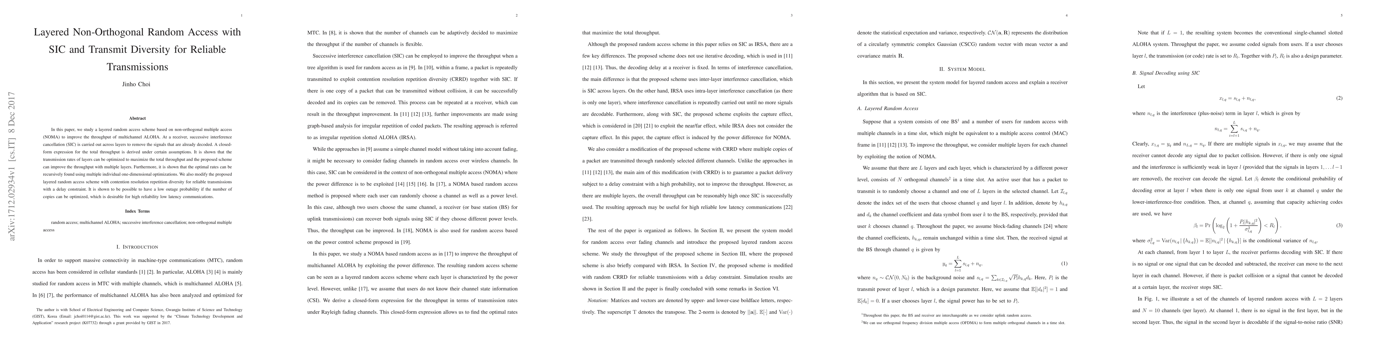 In this paper, we study a layered random access scheme based on non-orthogonal multiple access (NOMA) to improve the throughput of multichannel ALOHA. At a receiver, successive interference cancellation (SIC) is carried out across layers to remove the signals that are already decoded. A closed- form expression for the total throughput is derived under certain assumptions. It is shown that the transmission rates of layers can be optimized to maximize the total throughput and the proposed scheme can improve the throughput with multiple layers. Furthermore, it is shown that the optimal rates can be recursively found using multiple individual one-dimensional optimizations. We also modify the proposed layered random access scheme with contention resolution repetition diversity for reliable transmissions with a delay constraint. It is shown to be possible to have a low outage probability if the number of copies can be optimized, which is desirable for high reliability low latency communications.