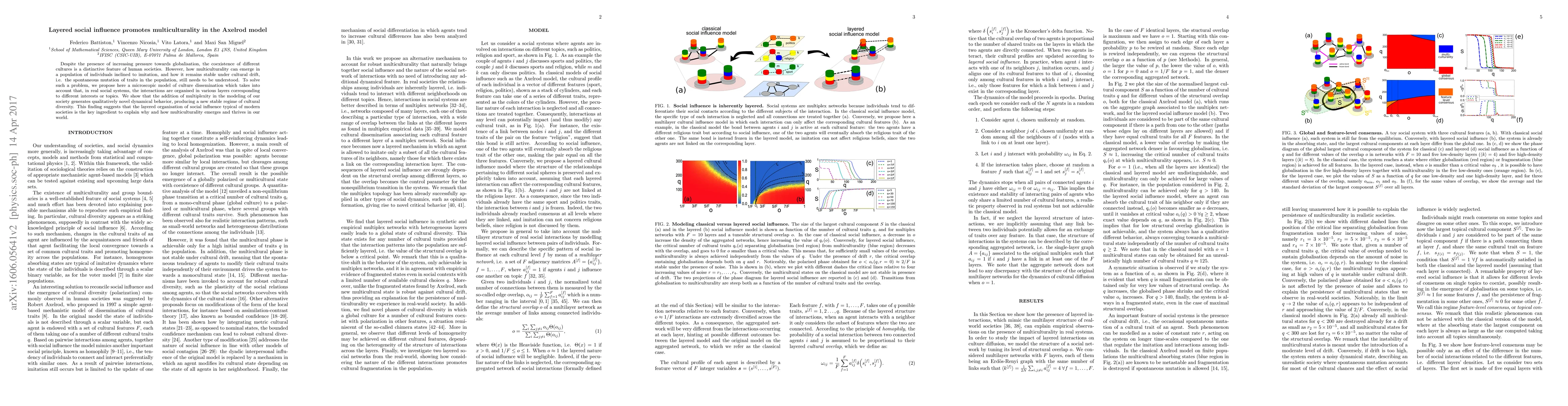 Why is our society multicultural? Based on the two mechanisms of homophily and social influence, the classical model for the dissemination of cultures proposed by Axelrod predicts the existence of a fragmented regime where different cultures can coexist in a social network. However, in such model the multicultural regime is achievable only when a high number of cultural traits is present, and is not robust against cultural drift, i.e. the spontaneous mutations of agents' traits. In real systems, social influence is inherently organised in layers, meaning that individuals tend to diversify their connections according to the topic on which they interact. In this work we show that the observed persistence of multiculturality in real-world social systems is a natural consequence of the layered organisation of social influence. We find that the critical number of cultural traits that separates the monocultural and the multicultural regimes depends on the redundancy of pairwise connections across layers. Surprisingly, for low values of structural redundancy the system is always in a multicultural state, independently on the number of traits, and is robust to the presence of cultural drift. Moreover, we show that layered social influence allows the coexistence of different levels of consensus on different topics. The insight obtained from simulations on synthetic graphs are confirmed by the analysis of two real-world social networks, where the multicultural regime persists even for a very small number of cultural traits, suggesting that the layered organisation of social interactions might indeed be at the heart of multicultural societies.