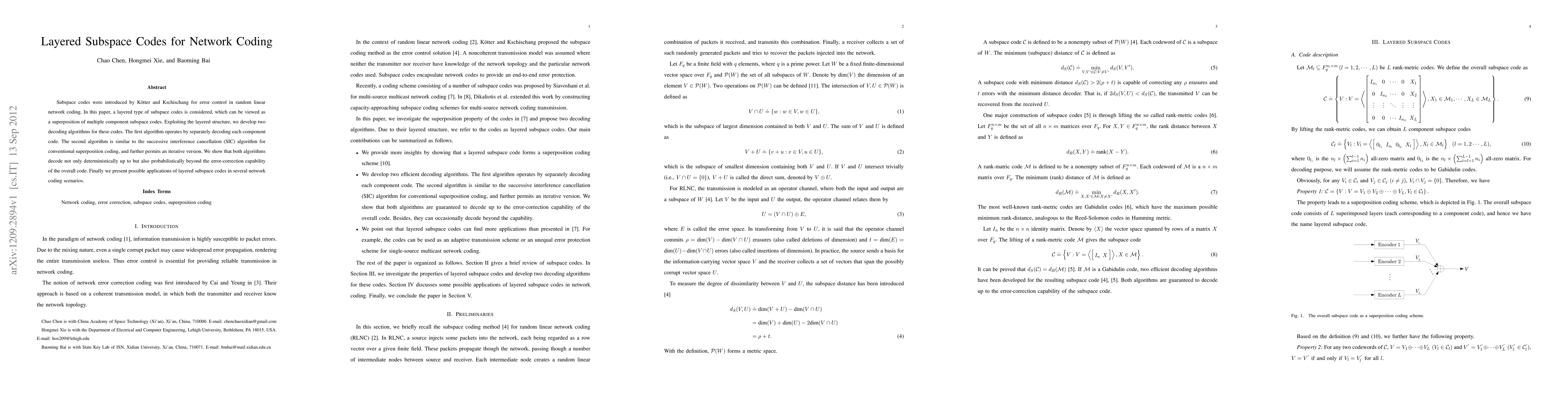 A layered subspace coding scheme was proposed and analyzed for its error correction capabilities