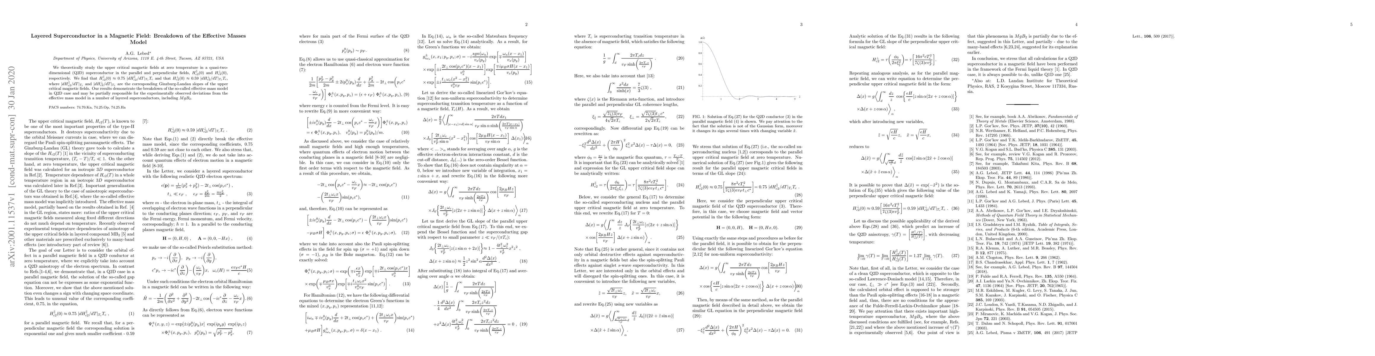 We theoretically study the upper critical magnetic fields at zero temperature in a quasi-two-dimensional (Q2D) superconductor in the parallel and perpendicular fields, $H_{c2}^{\parallel}(0)$ and $H_{c2}^{\perp}$(0), respectively. We find that $H_{c2}^{\parallel}(0) \approx 0.75 \ | d H_{c2}^{\parallel}/ dT|_{T_c} T_c $ and that $H_{c2}^{\perp}(0) \approx 0.59 \ | dH_{c2}^{\perp}/ d T|_{T_c} T_c$, where $| d H_{c2}^{\parallel}/ dT|_{T_c}$ and $| d H_{c2}^{\perp}/ d T|_{T_c}$ are the corresponding Ginzburg-Landau slopes of the upper critical magnetic fields. Our results demonstrate the breakdown of the so-called effective mass model in Q2D case and may be partially responsible for the experimentally observed deviations from the effective mass model in a number of layered superconductors, including $MgB_2$.