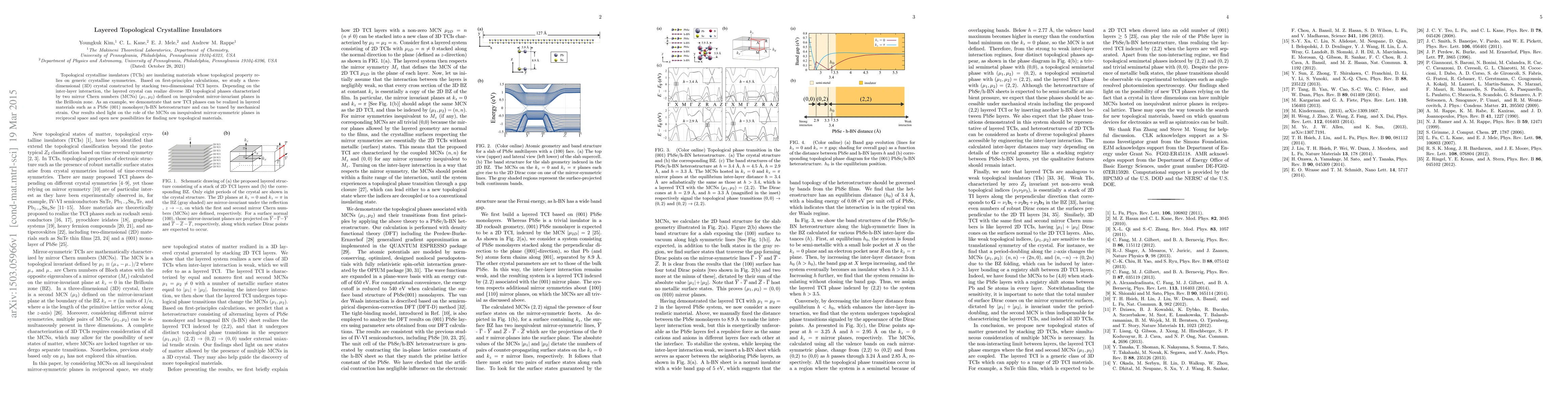 Topological crystalline insulators (TCIs) are insulating materials whose topological property relies on generic crystalline symmetries. Based on first-principles calculations, we study a three-dimensional (3D) crystal constructed by stacking two-dimensional TCI layers. Depending on the inter-layer interaction, the layered crystal can realize diverse 3D topological phases characterized by two mirror Chern numbers (MCNs) ($\mu_1,\mu_2$) defined on inequivalent mirror-invariant planes in the Brillouin zone. As an example, we demonstrate that new TCI phases can be realized in layered materials such as a PbSe (001) monolayer/h-BN heterostructure and can be tuned by mechanical strain. Our results shed light on the role of the MCNs on inequivalent mirror-symmetric planes in reciprocal space and open new possibilities for finding new topological materials.
