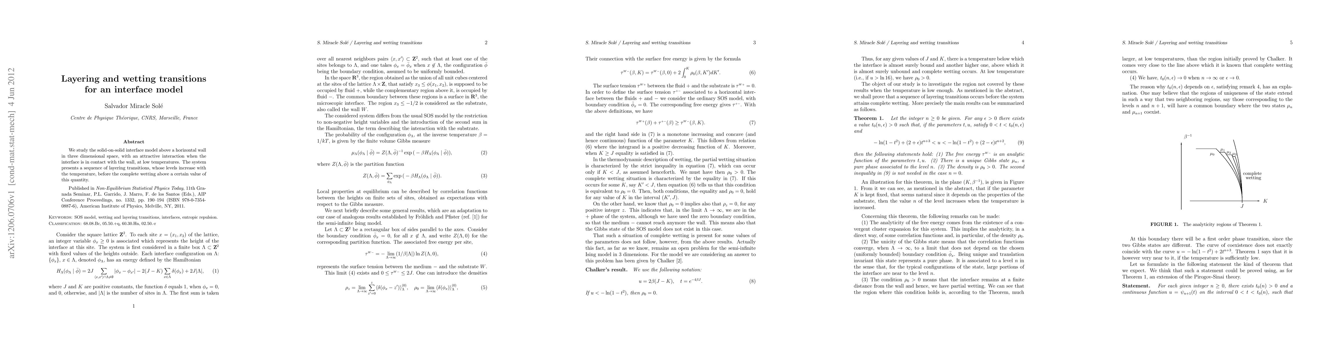 Summary: This research investigates a solid-on-solid interface model that exhibits a series of layering transitions increasing with temperature, culminating in complete wetting at higher temperatures due to attractive wall interactions.