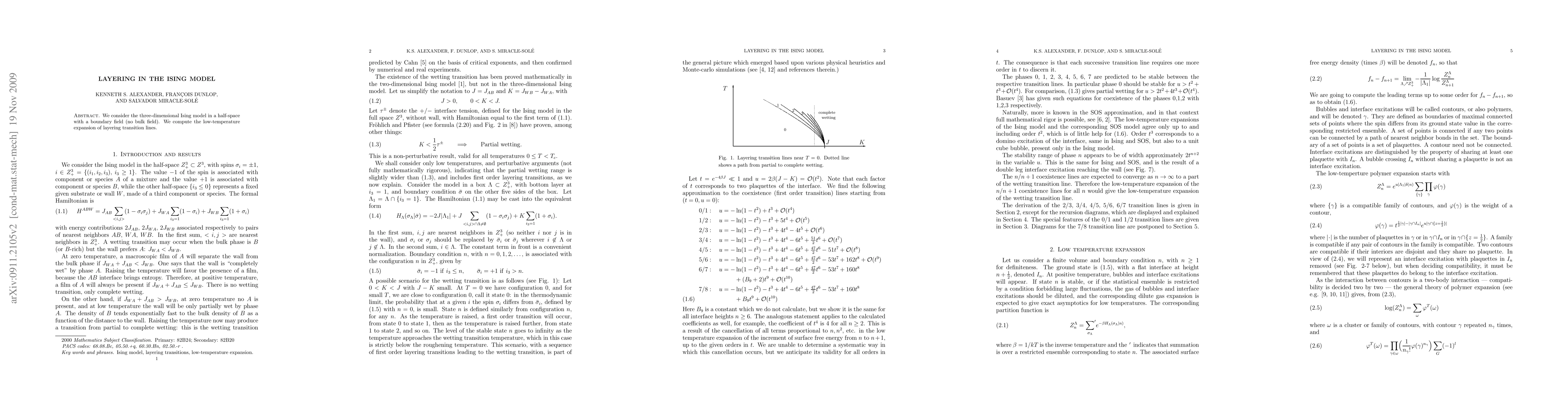 We consider the three-dimensional Ising model in a half-space with a boundary field (no bulk field). We compute the low-temperature expansion of layering transition lines.