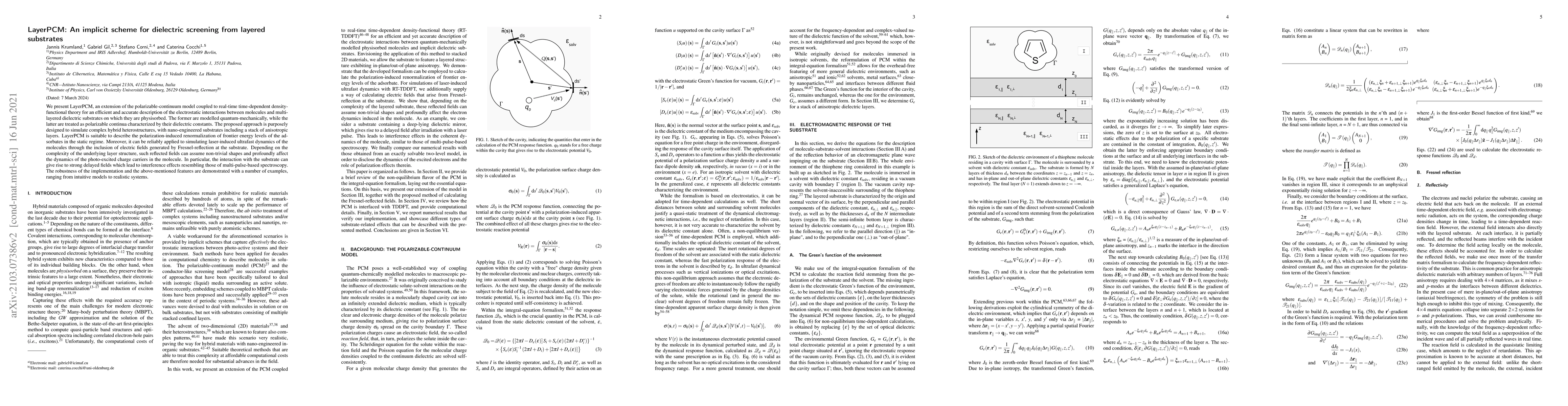 We present LayerPCM, an extension of the polarizable-continuum model coupled to real-time time-dependent density-functional theory for an efficient and accurate description of the electrostatic interactions between molecules and multilayered dielectric substrates on which they are physisorbed. The former are modelled quantum-mechanically, while the latter are treated as polarizable continua characterized by their dielectric constants. The proposed approach is purposely designed to simulate complex hybrid heterostructures, with nano-engineered substrates including a stack of anisotropic layers. LayerPCM is suitable to describe the polarization-induced renormalization of frontier energy levels of the adsorbates in the static regime. Moreover, it can be reliably applied to simulating laser-induced ultrafast dynamics of the molecules through the inclusion of electric fields generated by Fresnel-reflection at the substrate. Depending on the complexity of the underlying layer structure, such reflected fields can assume non-trivial shapes and profoundly affect the dynamics of the photo-excited charge carriers in the molecule. In particular, the interaction with the substrate can give rise to strong delayed fields which lead to interference effects resembling those of multi-pulse-based spectroscopy. The robustness of the implementation and the above-mentioned features are demonstrated with a number of examples, ranging from intuitive models to realistic systems.