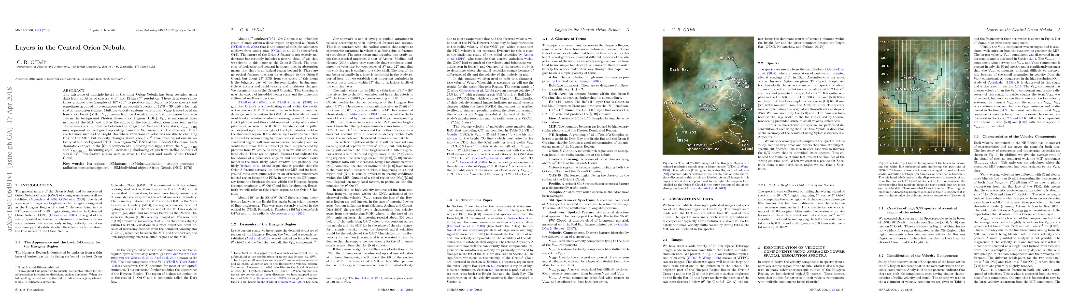 The study reveals multiple layers in the Orion Nebula with distinct velocity systems, including Vmif, Vscat, Vlow, and Vnew, each associated with different regions and processes. Dramatic changes in [OIII] components suggest shadowing effects from stellar photons in certain areas.