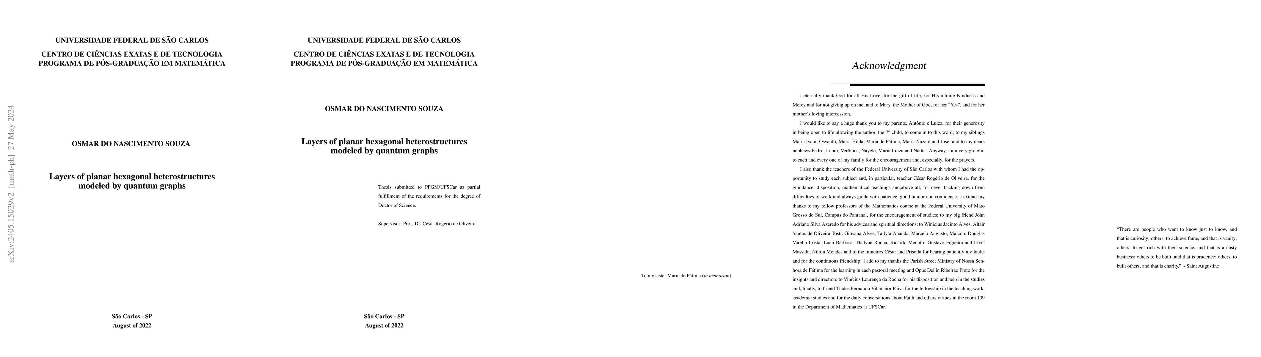 The work presents a study on the quantum theory of periodic graphs applied to mono- and bilayer hexagonal materials. Different parameters associated with the atoms present at the vertices of these materials were analyzed, verifying the existence of gaps in the spectral bands and expressing the width of these openings according to the parameters. The study was extended to heterostructures with mixed layers and "sandwiches" of graphene and hexagonal boron nitride. The dispersion relationships obtained in these models were analyzed and it was concluded that the inclusion of hBN layers on graphene layers can induce a gap in the graphene. Furthermore, it was observed that the inclusion of a single layer of graphene between two layers of hBN reduces the width of the spectral gap. The interaction between carbon atoms and nitrogen and boron atoms was pointed out as responsible for these results. Finally, the inclusion of a magnetic field in the hBN layer was considered, demonstrating that specific values of magnetic flux can eliminate conical touches in the dispersion relation of the operator and ensure the existence of gaps.