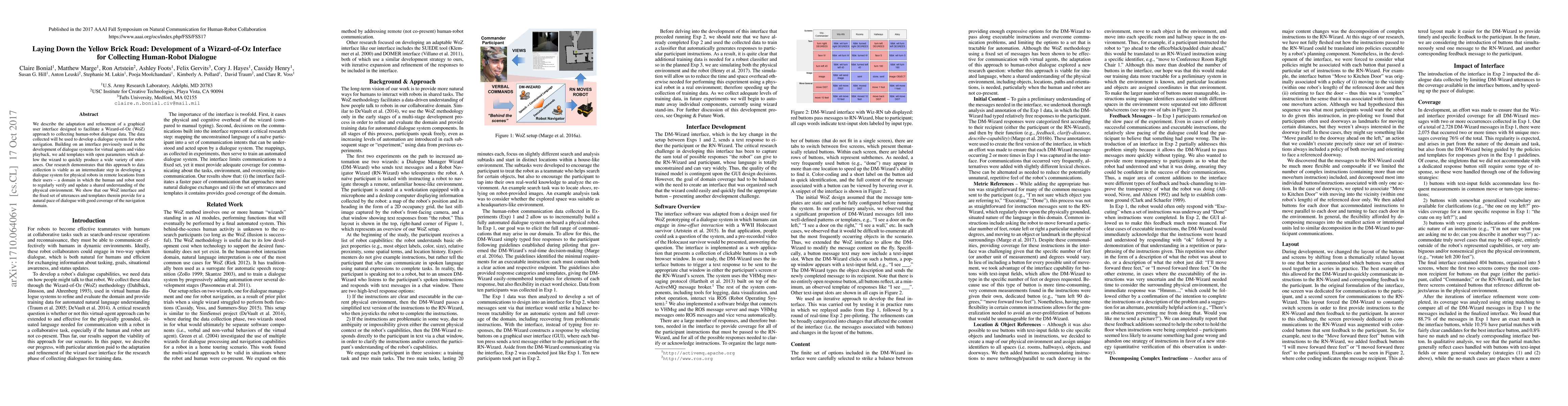 This paper details the development of a refined Wizard-of-Oz interface for collecting human-robot dialogue data, focusing on robot navigation. The interface allows for varied utterances, demonstrating its effectiveness in facilitating dialogue for developing navigation systems in remote environments.