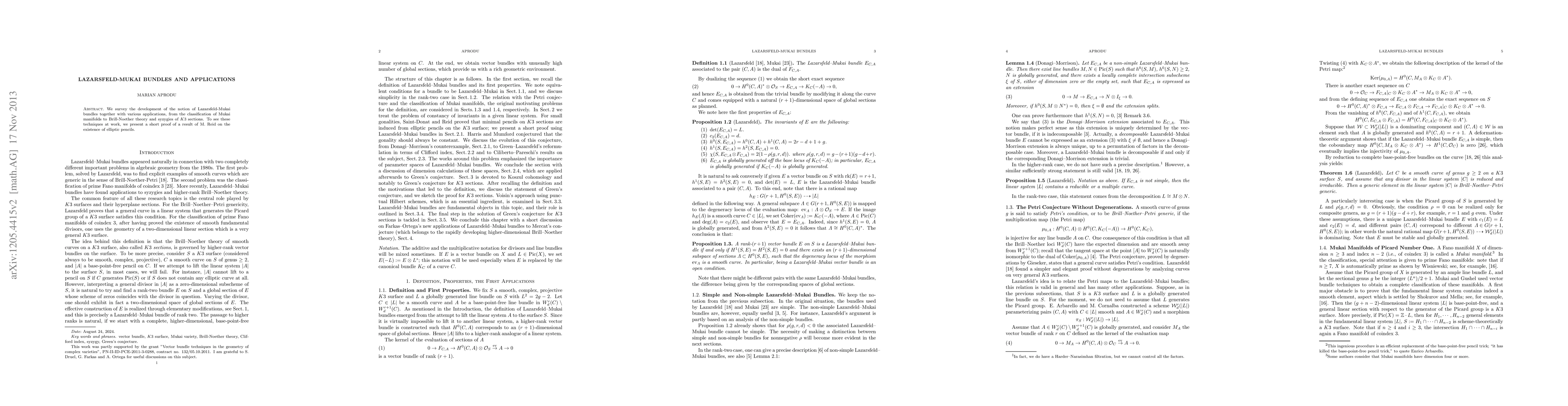 This paper surveys Lazarsfeld-Mukai bundles and their applications in classifying Mukai manifolds, exploring Brill-Noether theory, and analyzing syzygies of $K3$ sections. It also includes a proof of M. Reid's result on the existence of elliptic pencils.
