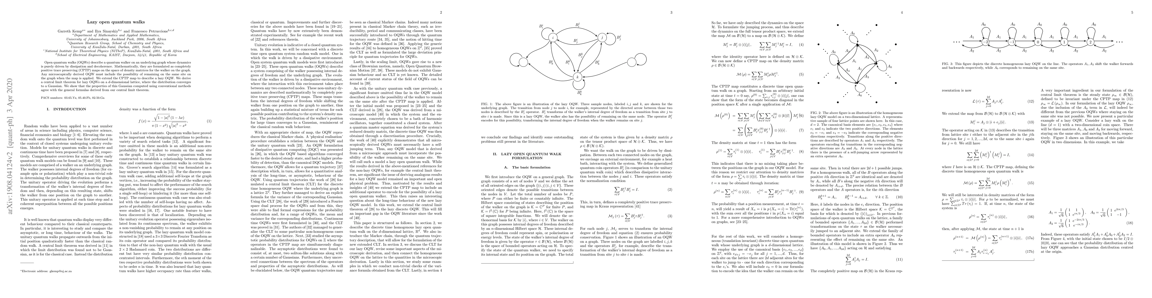 This paper extends open quantum walks to include a "lazy" option, allowing the walker to remain on the same site. It derives a central limit theorem for these lazy open quantum walks on a $d$-dimensional lattice, showing their distribution converges to a Gaussian, with properties verified by conventional methods.