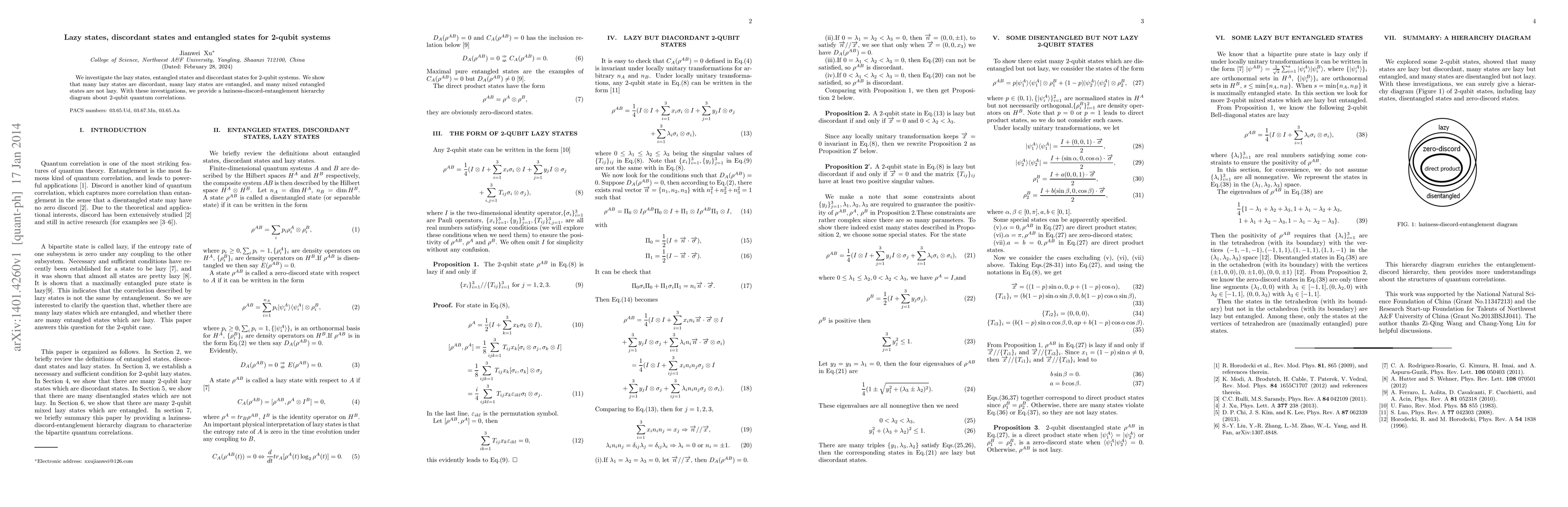 This paper examines the relationships between lazy states, entangled states, and discordant states in 2-qubit systems, revealing that many lazy states exhibit both entanglement and discord. The study concludes with a hierarchy diagram illustrating these quantum correlations.
