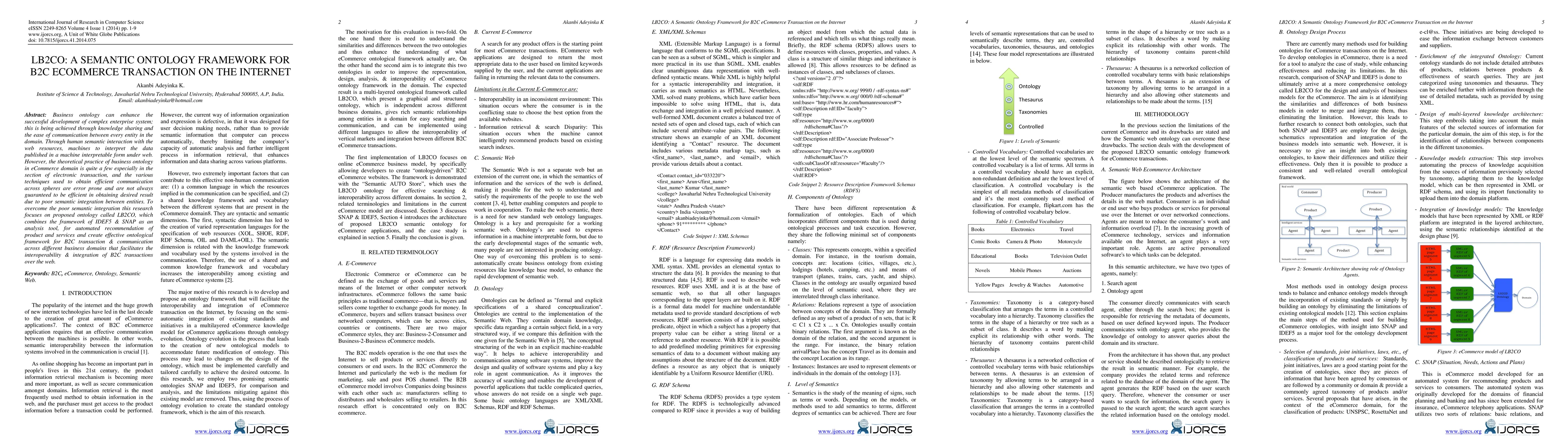 Business ontology can enhance the successful development of complex enterprise system; this is being achieved through knowledge sharing and the ease of communication between every entity in the domain. Through human semantic interaction with the web resources, machines to interpret the data published in a machine interpretable form under web. However, the theoretical practice of business ontology in eCommerce domain is quite a few especially in the section of electronic transaction, and the various techniques used to obtain efficient communication across spheres are error prone and are not always guaranteed to be efficient in obtaining desired result due to poor semantic integration between entities. To overcome the poor semantic integration this research focuses on proposed ontology called LB2CO, which combines the framework of IDEF5 & SNAP as an analysis tool, for automated recommendation of product and services and create effective ontological framework for B2C transaction & communication across different business domains that facilitates the interoperability & integration of B2C transactions over the web.