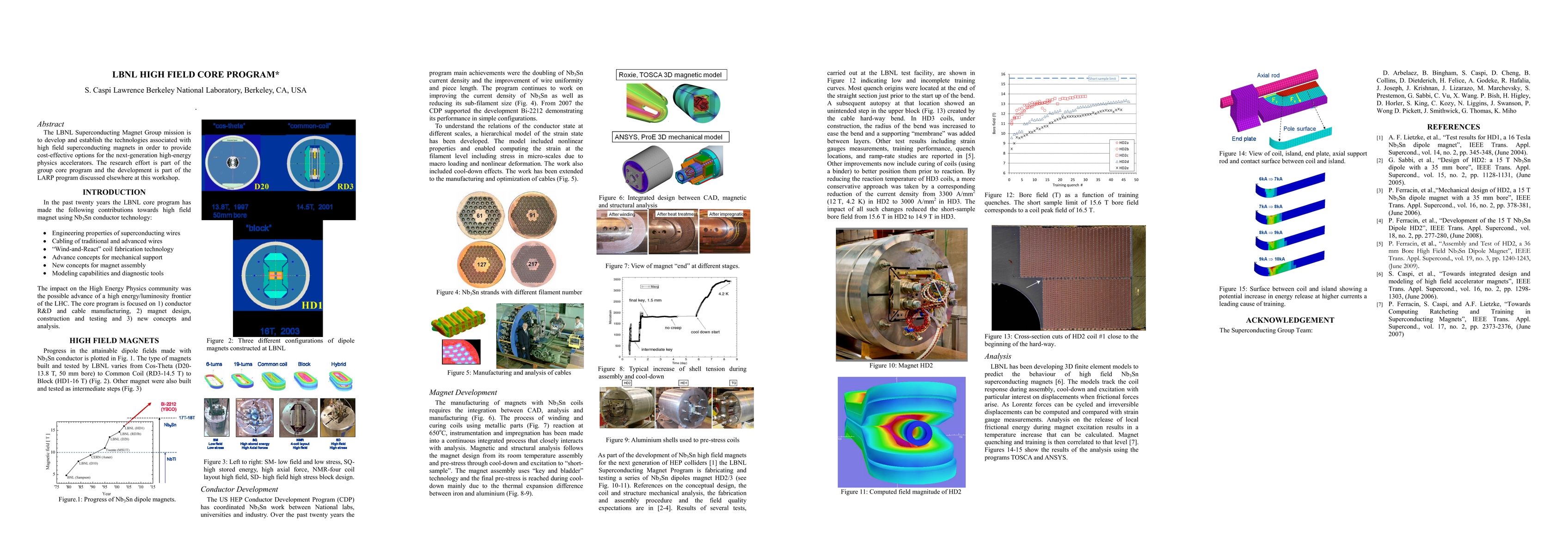 The LBNL Superconducting Magnet Group mission is to develop and establish the technologies associated with high field superconducting magnets in order to provide cost-effective options for the next-generation high-energy physics accelerators. The research effort is part of the group core program and the development is part of the LARP program discussed elsewhere at this workshop.