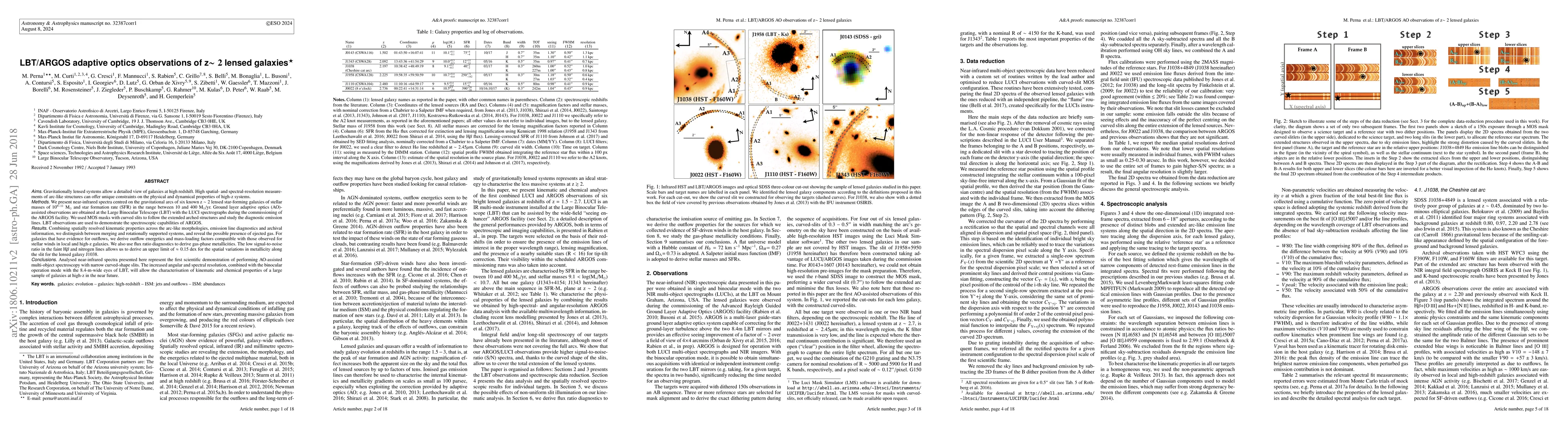 Gravitationally lensed systems allow a detailed view of galaxies at high redshift. High spatial- and spectral-resolution measurements of arc-like structures can offer unique constraints on the physical and dynamical properties of high-z systems. We present near-infrared spectra centred on the gravitational arcs of six known z ~ 2 lensed star-forming galaxies of stellar masses of 10^9-10^11 Msun and star formation rate (SFR) in the range between 10 and 400 Msun/yr. Ground layer adaptive optics (AO)-assisted observations are obtained at the Large Binocular Telescope (LBT) with the LUCI spectrographs during the commissioning of the ARGOS facility. We used MOS masks with curved slits to follow the extended arched structures and study the diagnostic emission lines. Combining spatially resolved kinematic properties across the arc-like morphologies, emission line diagnostics and archival information, we distinguish between merging and rotationally supported systems, and reveal the possible presence of ejected gas. For galaxies that have evidence for outflows, we derive outflow energetics and mass-loading factors compatible with those observed for stellar winds in local and high-z galaxies. We also use flux ratio diagnostics to derive gas-phase metallicities. The low signal-to-noise ratio in the faint H$\beta$ and nitrogen lines allows us to derive an upper limit of ~ 0.15 dex for the spatial variations in metallicity along the slit for the lensed galaxy J1038. Analysed near-infrared spectra presented here represent the first scientific demonstration of performing AO-assisted multi-object spectroscopy with narrow curved-shape slits. The increased angular and spectral resolution, combined with the binocular operation mode with the 8.4-m-wide eyes of LBT, will allow the characterisation of kinematic and chemical properties of a large sample of galaxies at high-z in the near future.