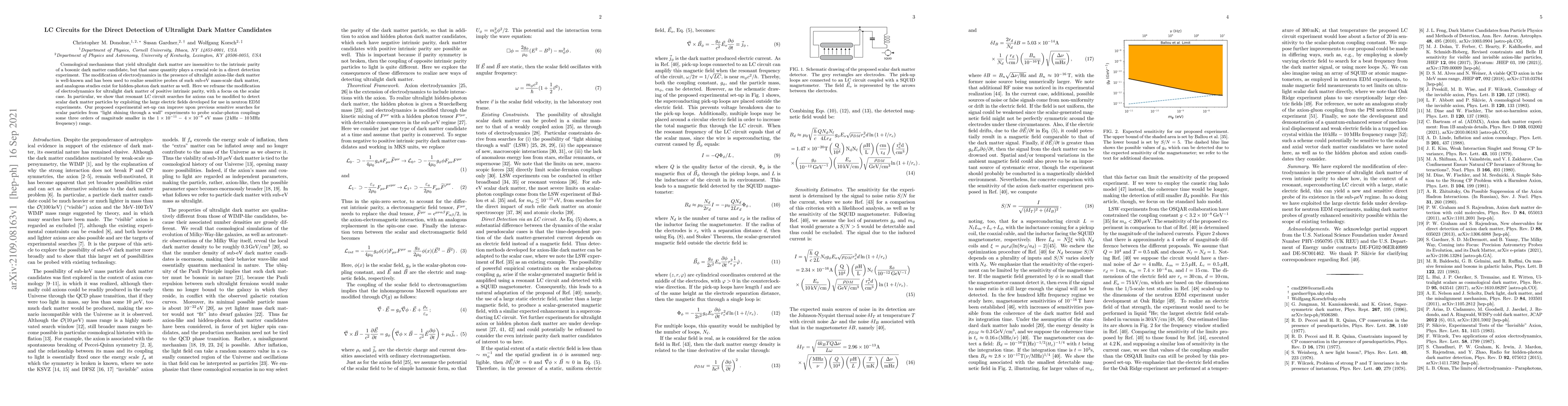 Cosmological mechanisms that yield ultralight dark matter are insensitive to the intrinsic parity of a bosonic dark matter candidate, but that same quantity plays a crucial role in a direct detection experiment. The modification of electrodynamics in the presence of ultralight axion-like dark matter is well-known and has been used to realize sensitive probes of such sub-eV mass-scale dark matter, and analogous studies exist for hidden-photon dark matter as well. Here we reframe the modification of electrodynamics for ultralight dark matter of positive intrinsic parity, with a focus on the scalar case. In particular, we show that resonant LC circuit searches for axions can be modified to detect scalar dark matter particles by exploiting the large electric fields developed for use in neutron EDM experiments. Our proposed experimental set-up can improve upon previous sensitive searches for scalar particles from "light shining through a wall" experiments to probe scalar-photon couplings some three orders of magnitude smaller in the $1\times 10^{-11} - \,4\times 10^{-8}$ eV mass ($2\, {\rm kHz} - 10\,{ \rm MHz}$ frequency) range.