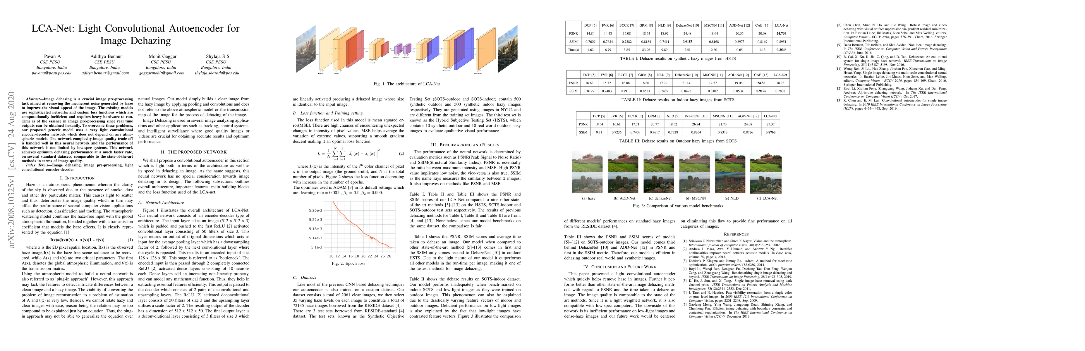 The LCA-Net model proposes a lightweight convolutional autoencoder for efficient image dehazing, achieving high-quality results faster than traditional methods without requiring heavy hardware. This model balances network complexity and image quality, making it suitable for real-time applications.