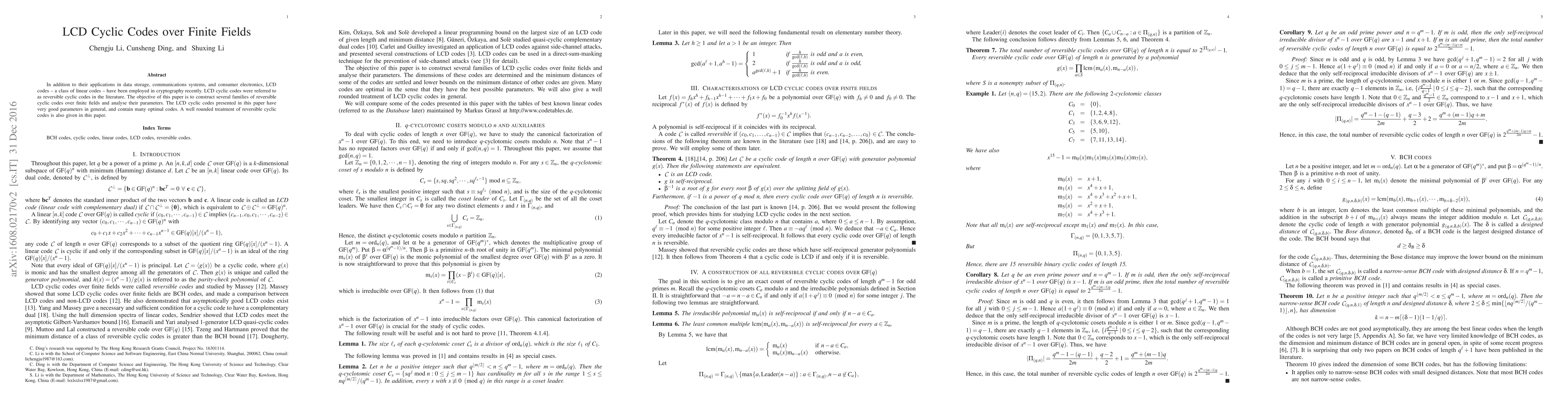 In addition to their applications in data storage, communications systems, and consumer electronics, LCD codes -- a class of linear codes -- have been employed in cryptography recently. LCD cyclic codes were referred to as reversible cyclic codes in the literature. The objective of this paper is to construct several families of reversible cyclic codes over finite fields and analyse their parameters. The LCD cyclic codes presented in this paper have very good parameters in general, and contain many optimal codes. A well rounded treatment of reversible cyclic codes is also given in this paper.