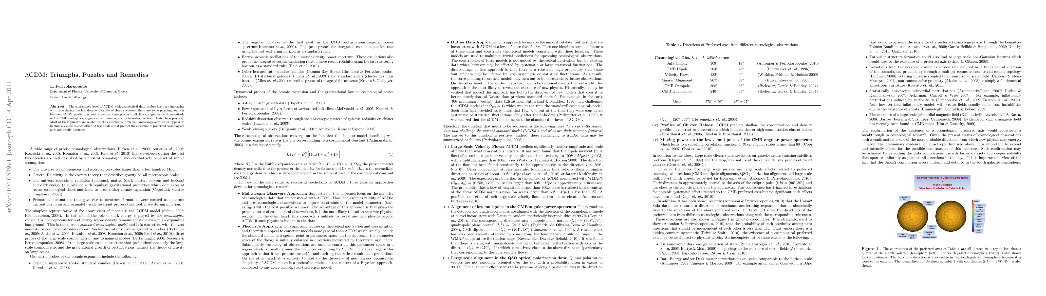 The consistency level of LCDM with geometrical data probes has been increasing with time during the last decade. Despite of these successes, there are some puzzling conflicts between LCDM predictions and dynamical data probes (bulk flows, alignment and magnitude of low CMB multipoles, alignment of quasar optical polarization vectors, cluster halo profiles). Most of these puzzles are related to the existence of preferred anisotropy axes which appear to be unlikely close to each other. A few models that predict the existence of preferred cosmological axes are briefly discussed.