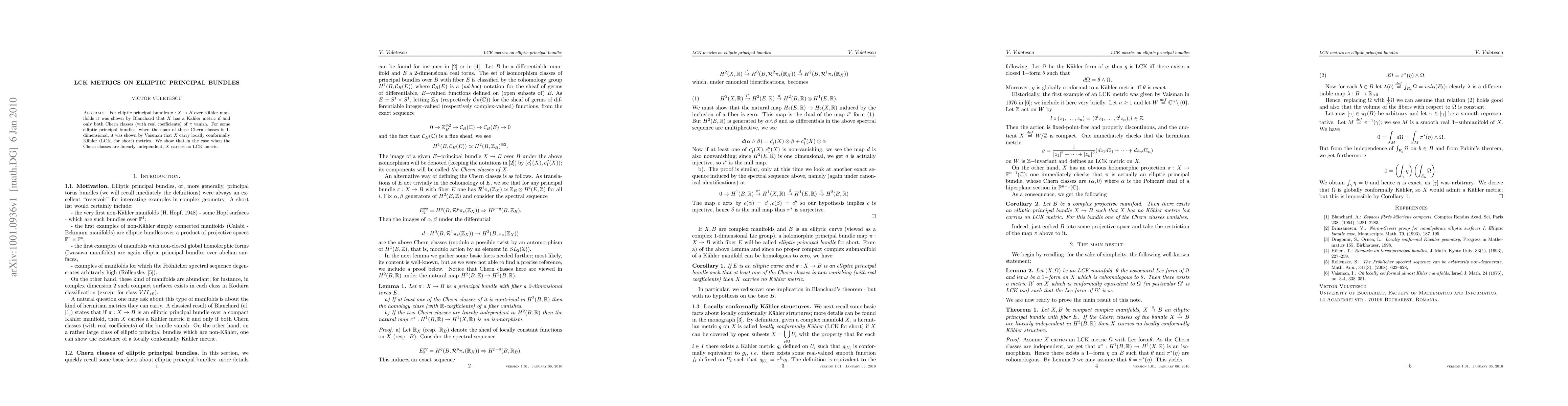 This research demonstrates that for elliptic principal bundles over Kähler manifolds, the existence of locally conformally Kähler (LCK) metrics depends on the vanishing of Chern classes. Specifically, when the Chern classes are linearly independent, no LCK metric can be found on the bundle.