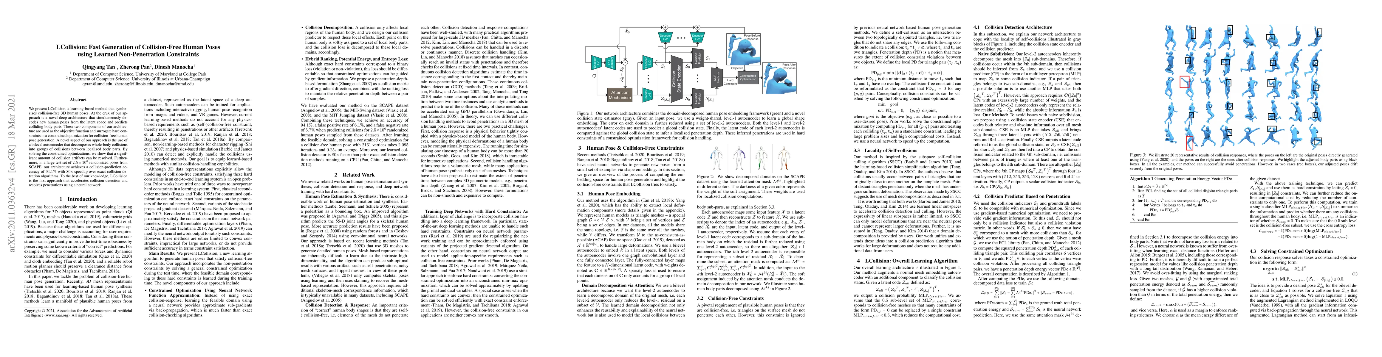 A new method called LCollision generates collision-free human poses using a deep learning architecture that predicts colliding body parts and resolves penetrations with high accuracy.