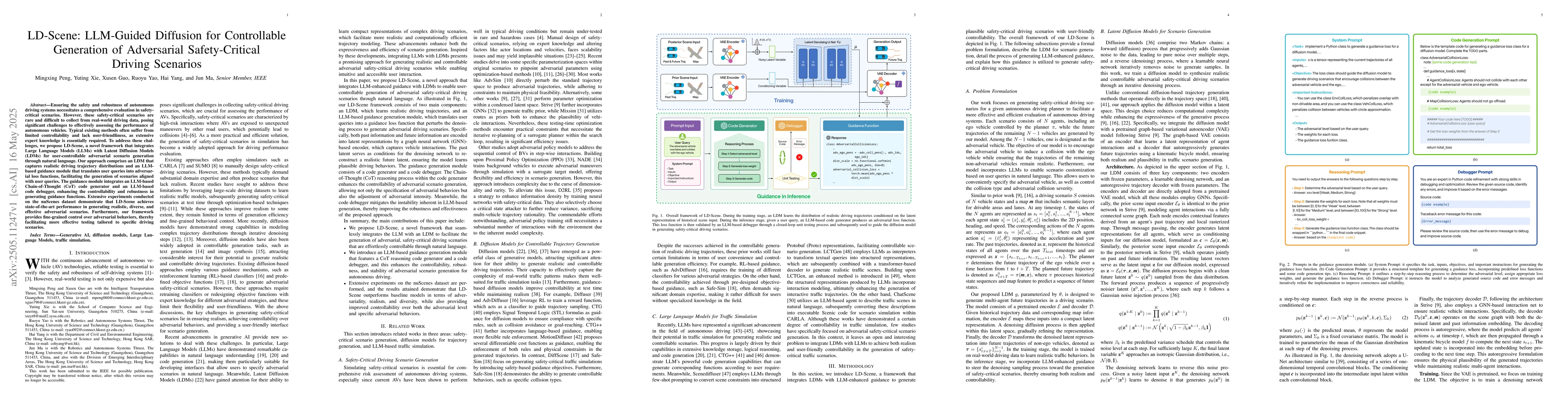 A new framework called LD-Scene uses Large Language Models and Latent Diffusion Models to generate realistic and controllable adversarial driving scenarios from user queries, improving the safety and robustness of autonomous vehicles.
