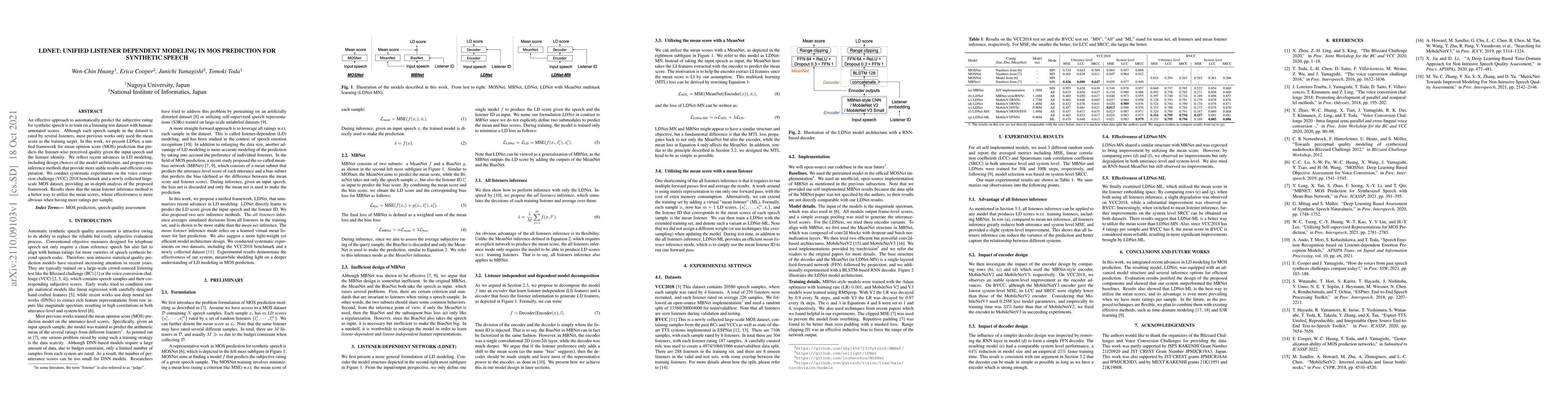 LDNet introduces a unified framework for predicting mean opinion scores (MOS) for synthetic speech by considering listener-dependent modeling. The proposed method provides listener-specific quality predictions and demonstrates improved performance over traditional mean score methods, especially when multiple ratings per sample are available.