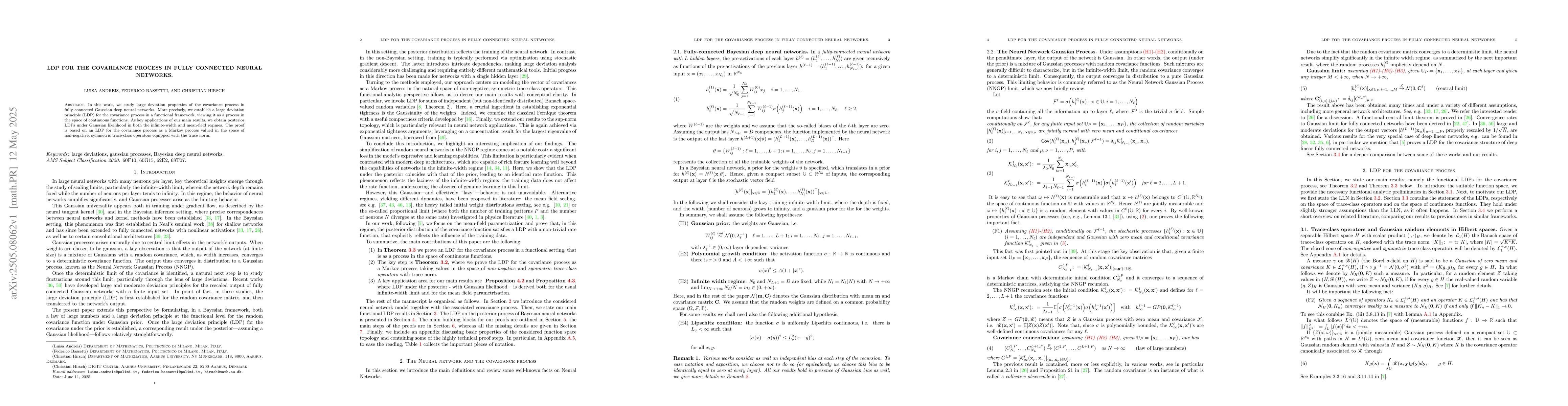 Researchers establish a large deviation principle for the covariance process in fully connected Gaussian deep neural networks, providing insight into posterior distributions under Gaussian likelihood.
