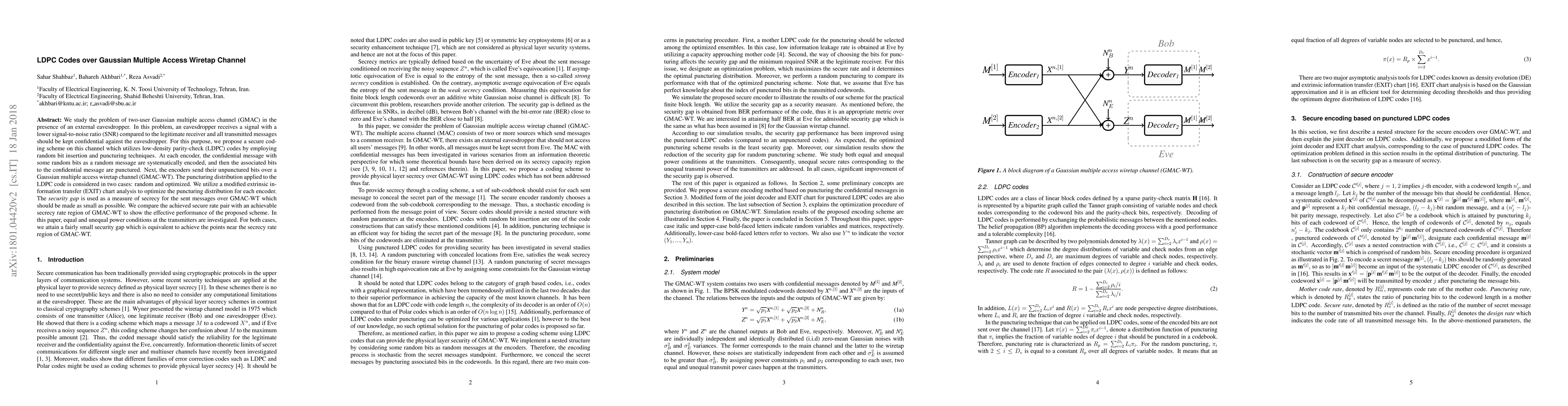 This paper proposes a secure coding scheme using LDPC codes for a two-user Gaussian multiple access wiretap channel with an eavesdropper. The scheme employs random bit insertion and puncturing techniques to maintain message confidentiality, optimizing the puncturing distribution via a modified EXIT chart analysis. The study compares the secure rate pair against an achievable secrecy rate region, achieving a small security gap under both equal and unequal power conditions.