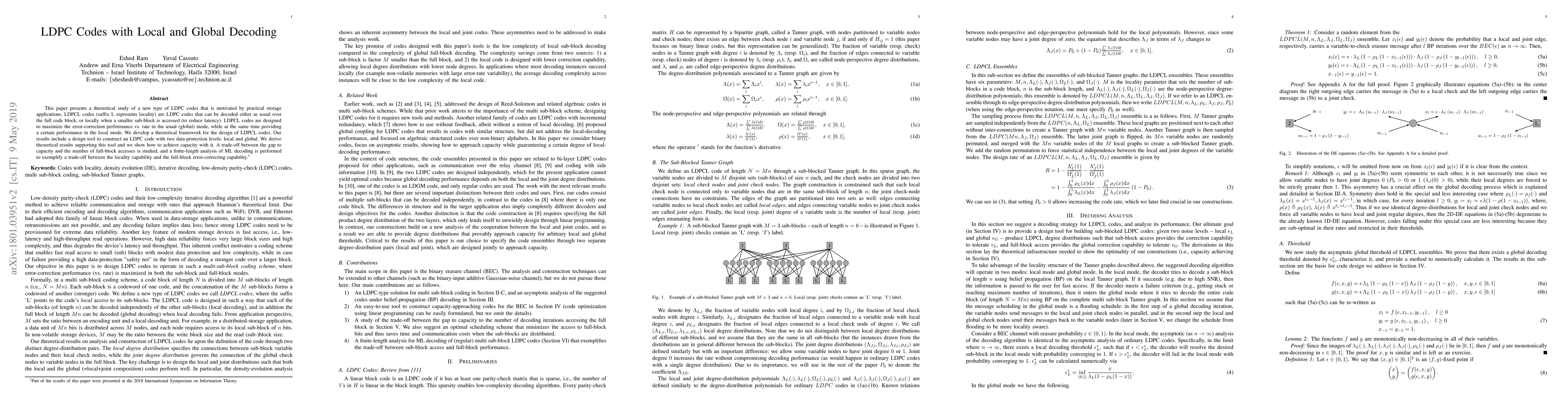 This paper presents a theoretical study of a new type of LDPC codes motivated by practical storage applications. LDPCL codes (suffix L represents locality) are LDPC codes that can be decoded either as usual over the full code block, or locally when a smaller sub-block is accessed (to reduce latency). LDPCL codes are designed to maximize the error-correction performance vs. rate in the usual (global) mode, while at the same time providing a certain performance in the local mode. We develop a theoretical framework for the design of LDPCL codes. Our results include a design tool to construct an LDPC code with two data-protection levels: local and global. We derive theoretical results supporting this tool and we show how to achieve capacity with it. A trade-off between the gap to capacity and the number of full-block accesses is studied, and a finite-length analysis of ML decoding is performed to exemplify a trade-off between the locality capability and the full-block error-correcting capability.
