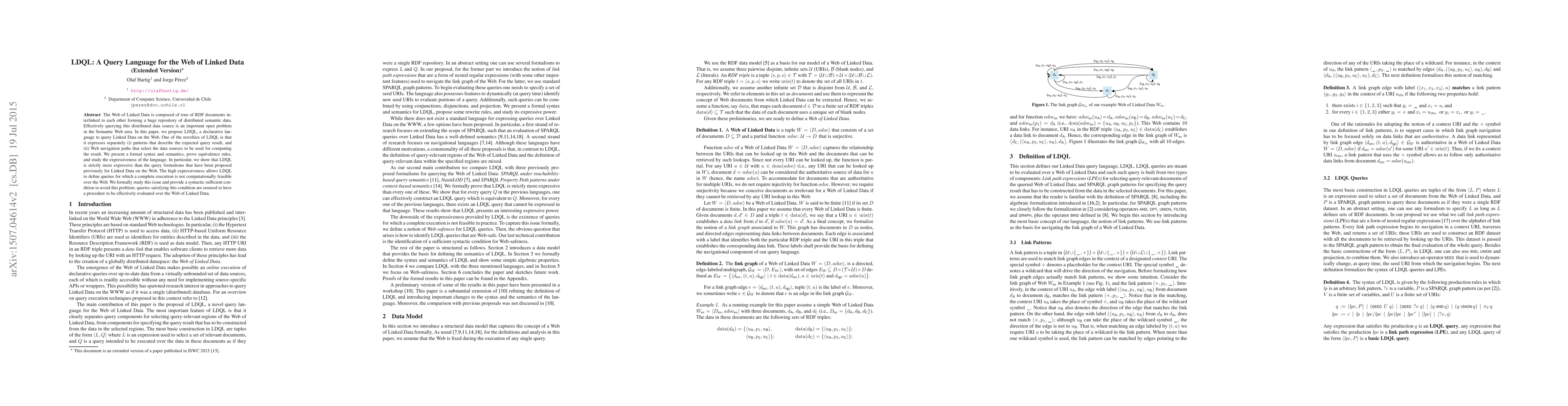The paper proposes LDQL, a declarative language for querying Linked Data on the Web, distinguishing it from other approaches by separating navigational features for selecting documents from patterns meant for evaluation over selected data.
