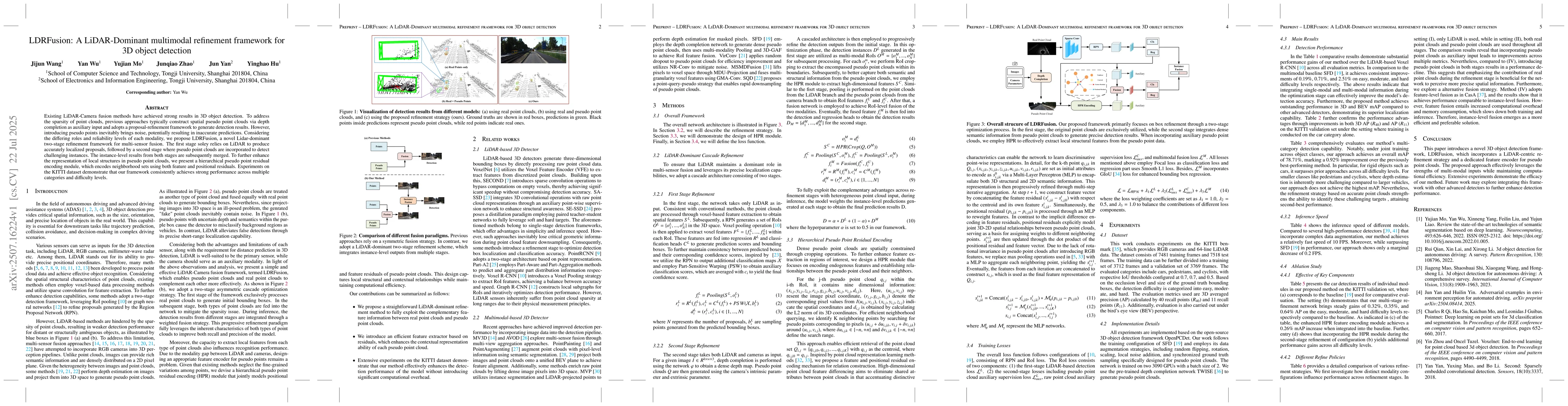 Existing LiDAR-Camera fusion methods have achieved strong results in 3D object detection. To address the sparsity of point clouds, previous approaches typically construct spatial pseudo point clouds via depth completion as auxiliary input and adopts a proposal-refinement framework to generate detection results. However, introducing pseudo points inevitably brings noise, potentially resulting in inaccurate predictions. Considering the differing roles and reliability levels of each modality, we propose LDRFusion, a novel Lidar-dominant two-stage refinement framework for multi-sensor fusion. The first stage soley relies on LiDAR to produce accurately localized proposals, followed by a second stage where pseudo point clouds are incorporated to detect challenging instances. The instance-level results from both stages are subsequently merged. To further enhance the representation of local structures in pseudo point clouds, we present a hierarchical pseudo point residual encoding module, which encodes neighborhood sets using both feature and positional residuals. Experiments on the KITTI dataset demonstrate that our framework consistently achieves strong performance across multiple categories and difficulty levels.