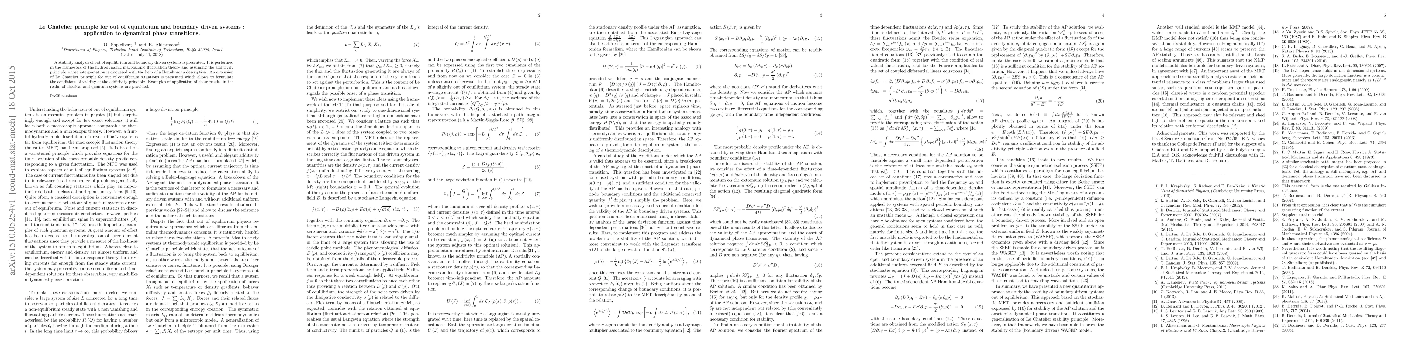 This paper extends the Le Chatelier principle to out-of-equilibrium systems, analyzing their stability using hydrodynamic macroscopic fluctuation theory. It discusses the additivity principle's interpretation and provides examples of its application in both classical and quantum systems.