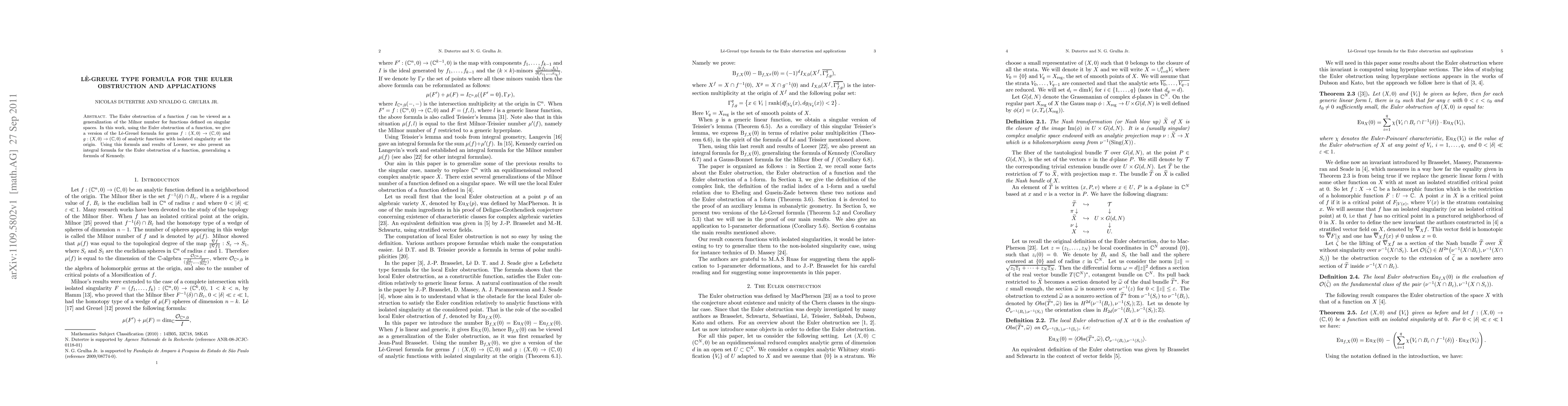 This paper presents a version of the L\^e-Greuel formula for the Euler obstruction of two analytic functions with isolated singularities, extending the Milnor number concept. It also provides an integral formula for the Euler obstruction, generalizing Kennedy's results.