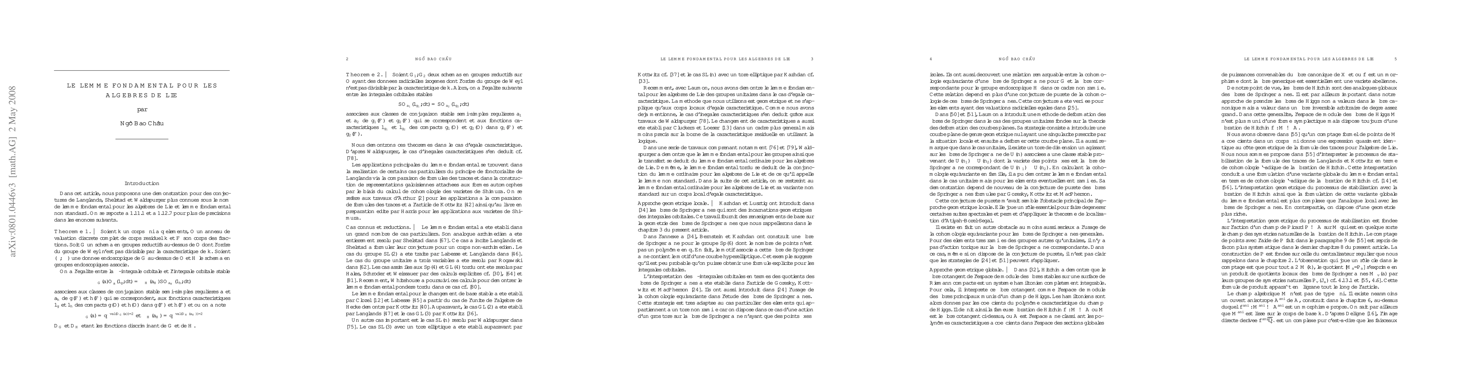 We propose a proof for conjectures of Langlands, Shelstad and Waldspurger known as the fundamental lemma for Lie algebras and the non-standard fundamental lemma. The proof is based on a study of the decomposition of the l-adic cohomology of the Hitchin fibration into direct sum of simple perverse sheaves.