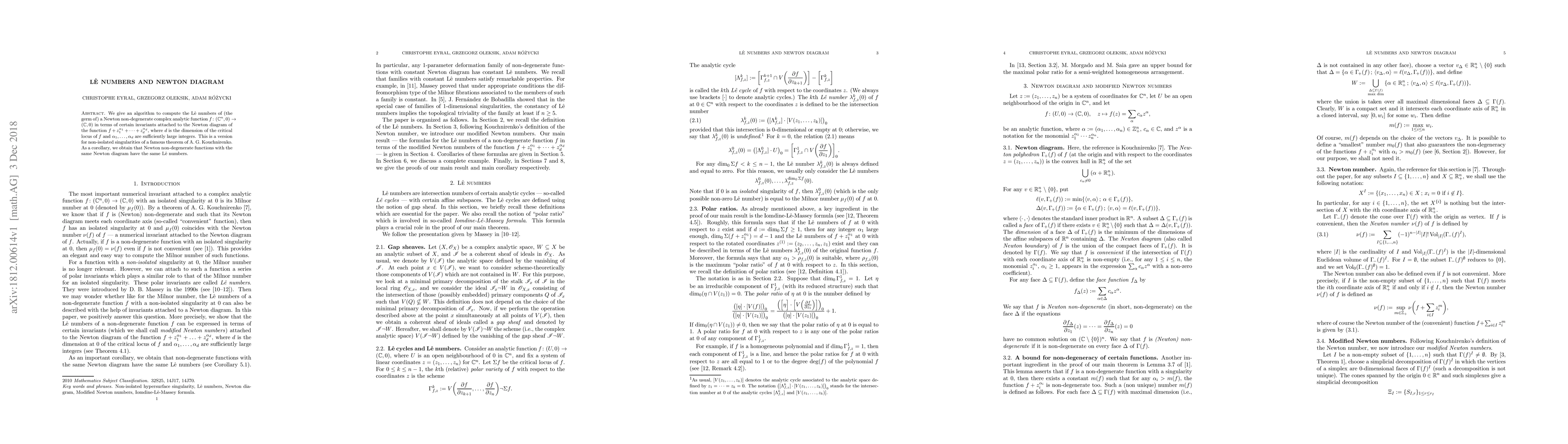 This paper presents an algorithm to determine the L^e numbers of a Newton non-degenerate complex analytic function based on invariants from its Newton diagram. It extends Kouchnirenko's theorem to non-isolated singularities, proving that functions with identical Newton diagrams share the same L^e numbers.