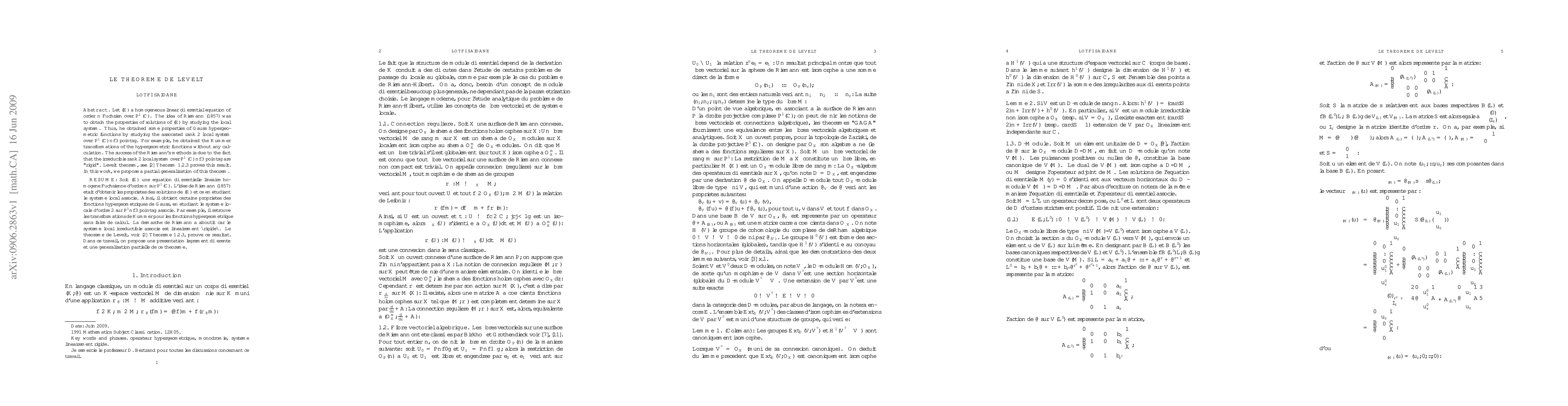 Let $(E)$ a homogeneous linear differential equation of order $n$ Fuchsien over $\mathbb{P}^{1}(\mathbb{C}) $. The idea of Riemann (1857) was to obtain the properties of solutions of (E) by studying the local system. Thus, he obtained some properties of Gauss hypergeometric functions by studying the assocated rank 2 local system over $\mathbb{P}^{1}(\mathbb{C}) \backslash {3 points} $. For example, he obtained the Kummer transformations of the hypergeometric functions without any calculation. The success of the Riemann's methods is due to the fact that the irreducible rank 2 local system over $\mathbb{P}^{1}(\mathbb{C}) \backslash {3 points} $ are "rigid". Levelt theorem, see \cite{B} Theorem 1.2.3 proves this result. In this work, we propose a partial generalization of this theorem.