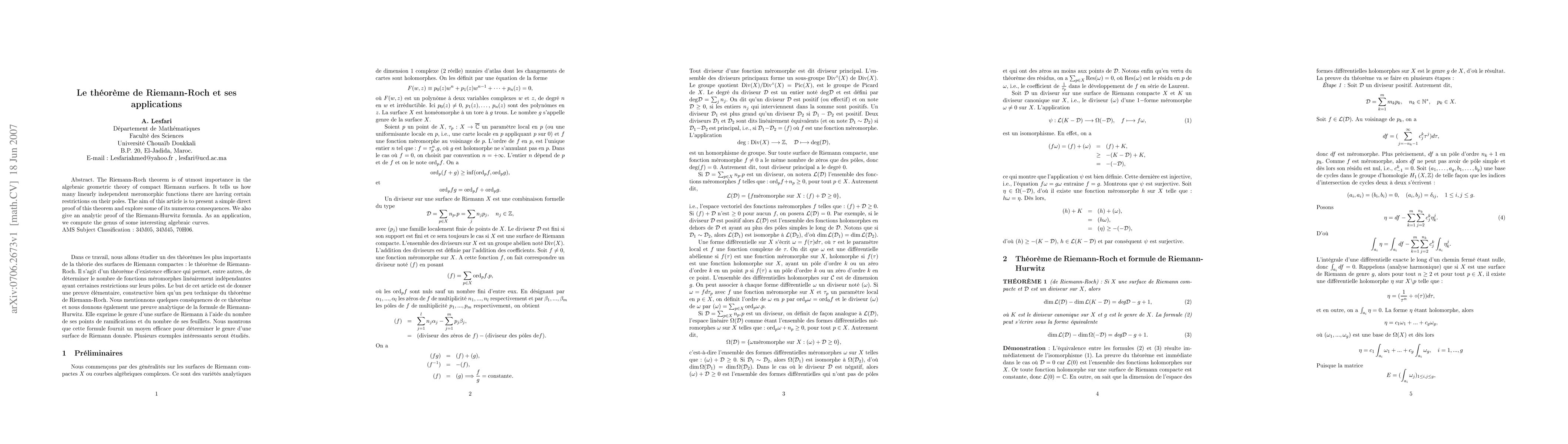 The Riemann-Roch theorem is of utmost importance in the algebraic geometric theory of compact Riemann surfaces. It tells us how many linearly independent meromorphic functions there are having certain restrictions on their poles. The aim of this article is to present a simple direct proof of this theorem and explore some of its numerous consequences. We also give an analytic proof of the Riemann-Hurwitz formula. As an application, we compute the genus of some interesting algebraic curves.