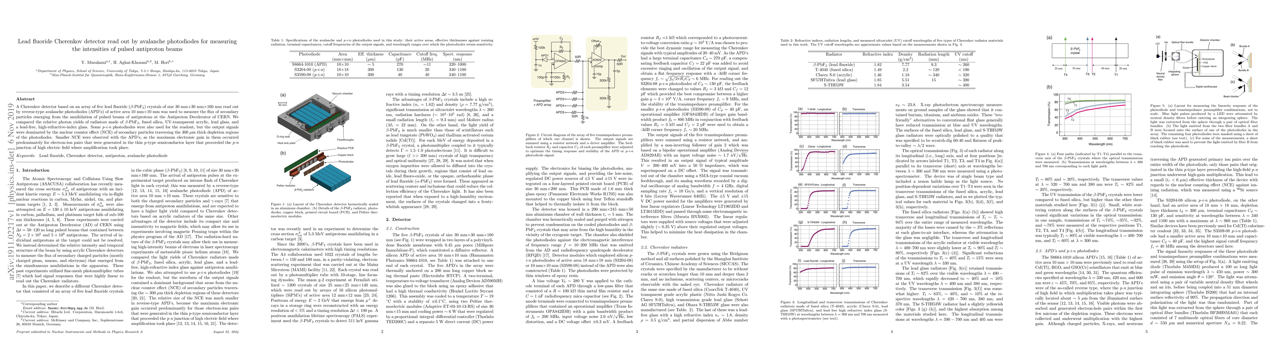 This research developed a Cherenkov detector using lead fluoride crystals and avalanche photodiodes to measure antiproton beam intensities at CERN, comparing photon yields with other materials. The avalanche photodiodes showed reduced nuclear counter effect compared to p-i-n photodiodes.