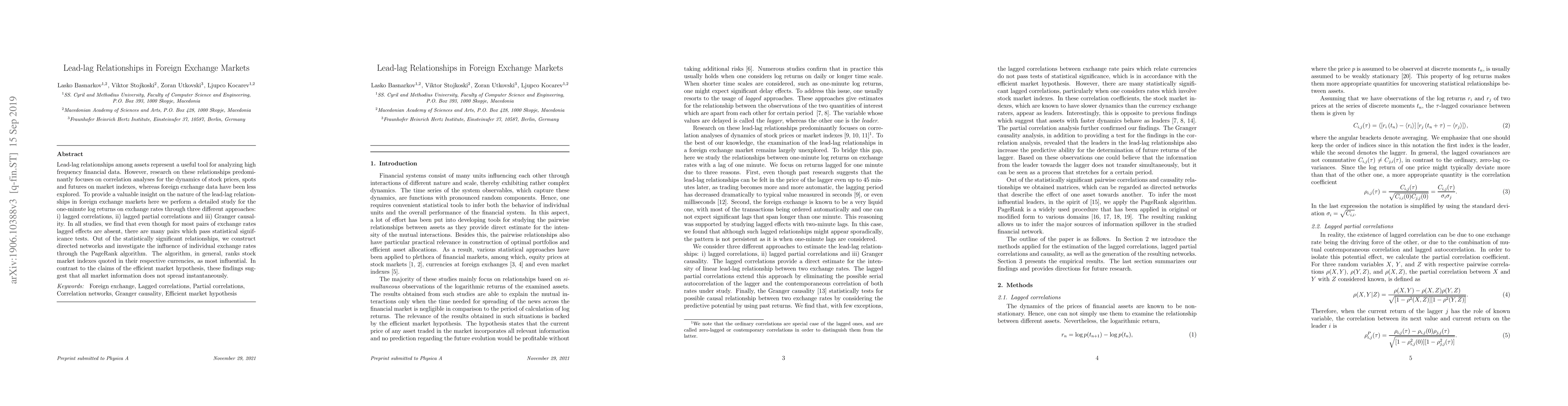 Research explores lead-lag relationships in foreign exchange markets using three approaches, revealing statistically significant non-instantaneous information spread between exchange rates. Directed networks suggest that some market indexes can be ranked as influential based on their influence across currencies.