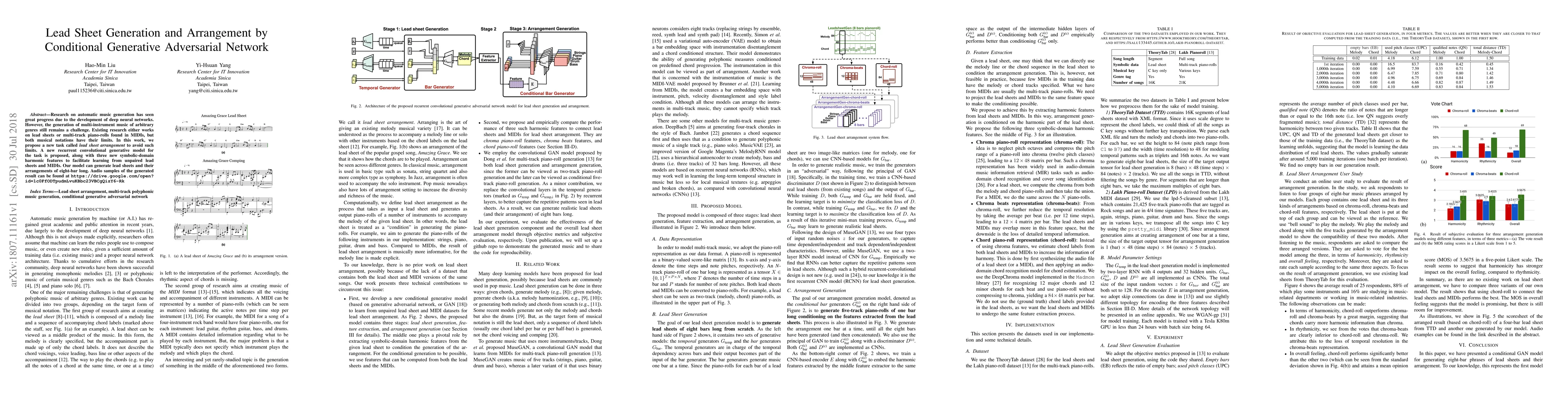 Research on automatic music generation has seen great progress due to the development of deep neural networks. However, the generation of multi-instrument music of arbitrary genres still remains a challenge. Existing research either works on lead sheets or multi-track piano-rolls found in MIDIs, but both musical notations have their limits. In this work, we propose a new task called lead sheet arrangement to avoid such limits. A new recurrent convolutional generative model for the task is proposed, along with three new symbolic-domain harmonic features to facilitate learning from unpaired lead sheets and MIDIs. Our model can generate lead sheets and their arrangements of eight-bar long. Audio samples of the generated result can be found at https://drive.google.com/open?id=1c0FfODTpudmLvuKBbc23VBCgQizY6-Rk