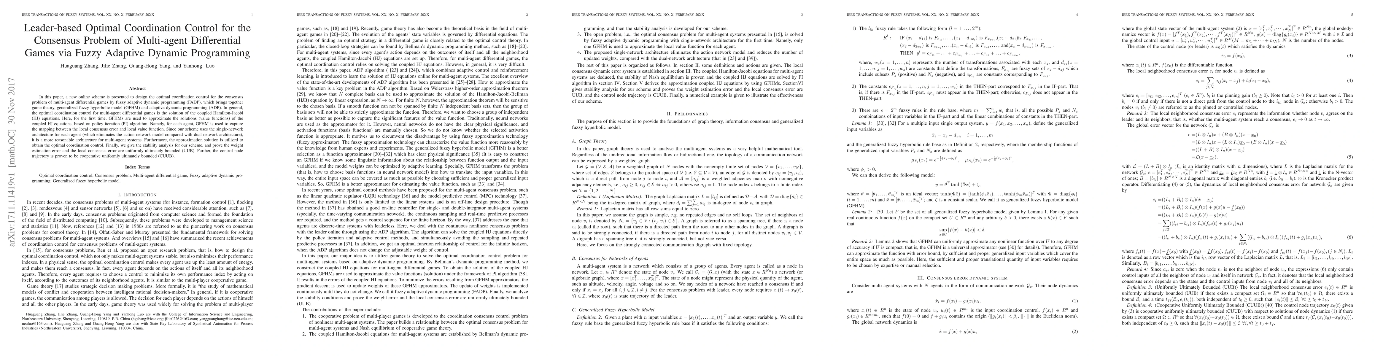 This paper presents a new method for coordinating multi-agent systems using fuzzy adaptive dynamic programming, achieving optimal control through the use of generalized fuzzy hyperbolic models.