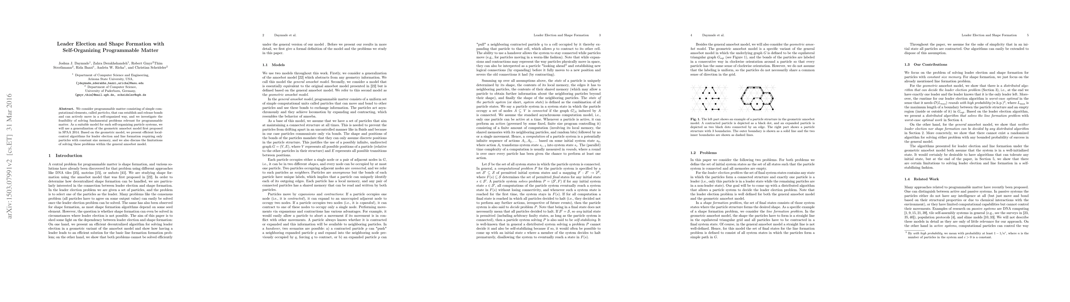 This paper explores programmable matter systems using self-organizing particles, presenting efficient algorithms for leader election and line formation based on a generalized geometric amoebot model. It discusses the limitations of these solutions within the broader amoebot framework.