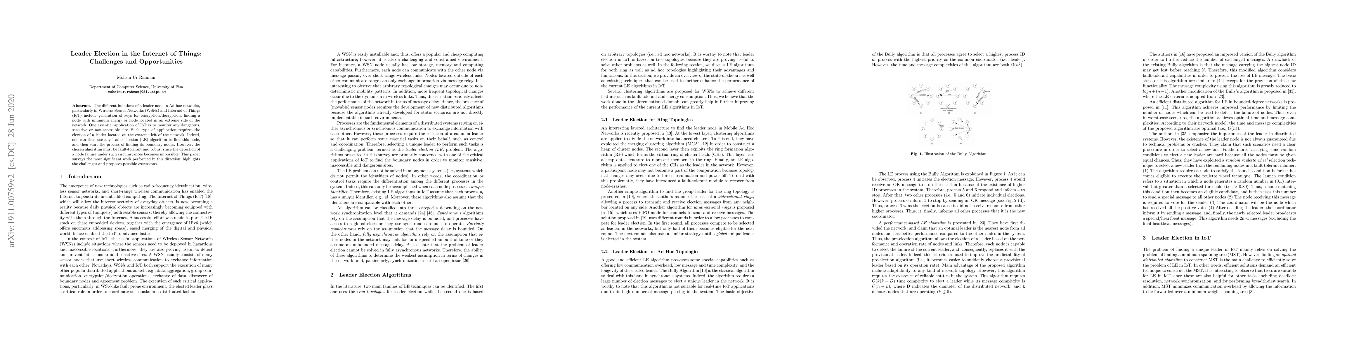 The different functions of a leader node in Ad hoc networks, particularly in Wireless Sensor Networks (WSNs) and Internet of Things (IoT) include generation of keys for encryption/decryption, finding a node with minimum energy or node located in an extreme side of the network. One essential application of IoT is to monitor any dangerous, sensitive or non-accessible site. Such type of application requires the election of a leader located on the extreme left of the network. Indeed, one can then use any leader election (LE) algorithm to find this node, and then start the process of finding its boundary nodes. However, the chosen algorithm must be fault-tolerant and robust since the detection of a node failure under such circumstances becomes impossible. This paper surveys the most significant work performed in this direction, highlights the challenges and proposes possible extensions.