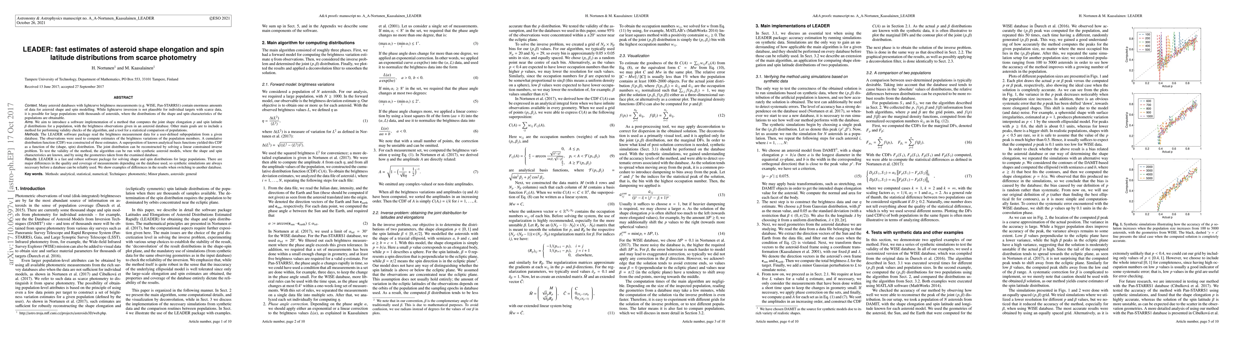 Many asteroid databases with lightcurve brightness measurements (e.g. WISE, Pan-STARRS1) contain enormous amounts of data for asteroid shape and spin modelling. While lightcurve inversion is not plausible for individual targets with scarce data, it is possible for large populations with thousands of asteroids, where the distributions of the shape and spin characteristics of the populations are obtainable. We aim to introduce a software implementation of a method that computes the joint shape elongation p and spin latitude beta distributions for a population, with the brightness observations given in an asteroid database. Other main goals are to include a method for performing validity checks of the algorithm, and a tool for a statistical comparison of populations. The LEADER software package read the brightness measurement data for a user-defined subpopulation from a given database. The observations were used to compute estimates of the brightness variations of the population members. A cumulative distribution function (CDF) was constructed of these estimates. A superposition of known analytical basis functions yielded this CDF as a function of the (shape, spin) distribution. The joint distribution can be reconstructed by solving a linear constrained inverse problem. To test the validity of the method, the algorithm can be run with synthetic asteroid models, where the shape and spin characteristics are known, and by using the geometries taken from the examined database. LEADER is a fast and robust software package for solving shape and spin distributions for large populations. There are major differences in the quality and coverage of measurements depending on the database used, so synthetic simulations are always necessary before a database can be reliably used. We show examples of differences in the results when switching to another database.