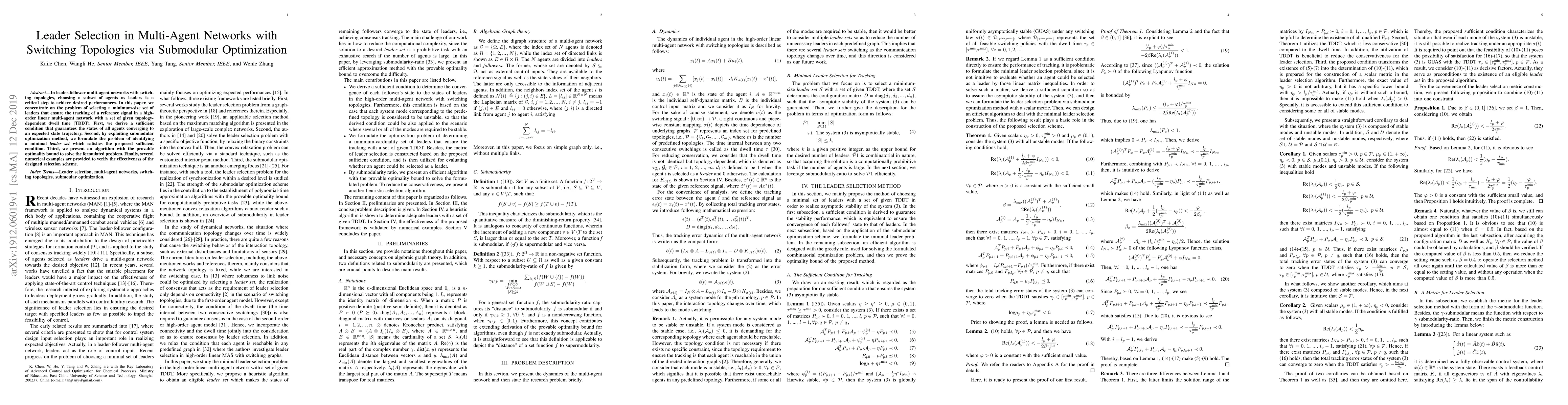 This paper explores leader selection in multi-agent networks with switching topologies, focusing on identifying a minimal set of leaders to ensure performance. It derives a sufficient condition for state convergence and uses submodular optimization to formulate and solve the leader selection problem, providing an algorithm with provable optimality.