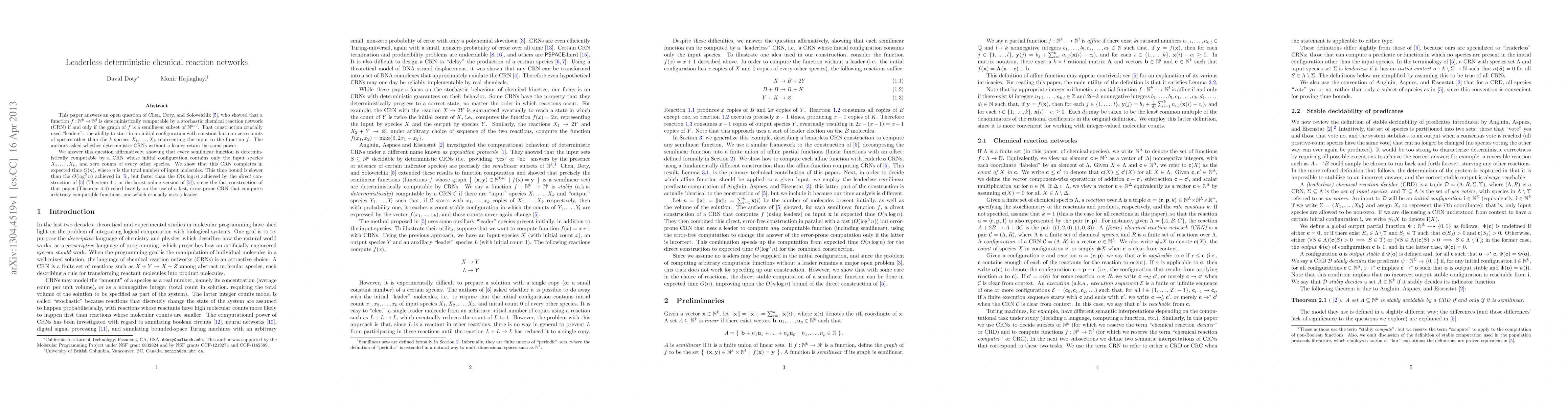A new type of chemical reaction network has been designed to solve deterministic computing problems without a leader, achieving an expected time complexity of O(n).