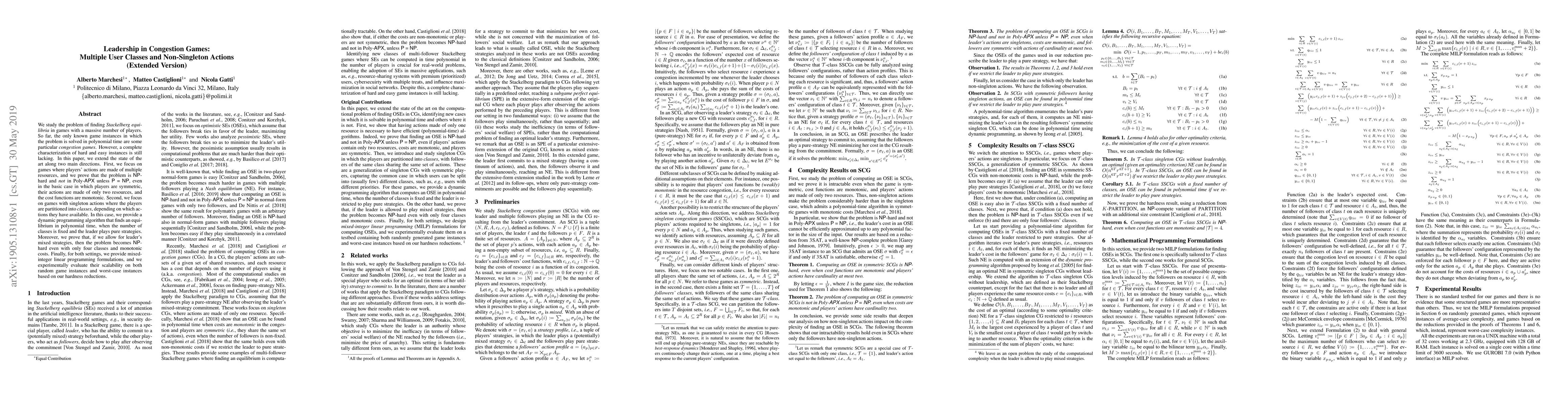 This paper studies leadership in congestion games with multiple user classes and non-singleton actions, proving that the problem is NP-hard for certain cases, but provides a polynomial-time algorithm for singleton actions with partitioned players.
