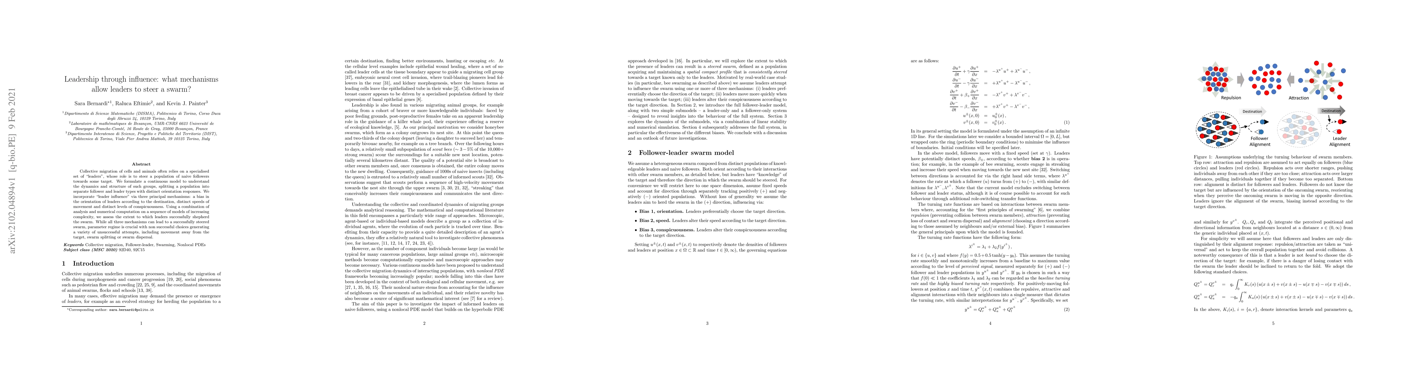 Collective migration of cells and animals often relies on a specialised set of "leaders", whose role is to steer a population of naive followers towards some target. We formulate a continuous model to understand the dynamics and structure of such groups, splitting a population into separate follower and leader types with distinct orientation responses. We incorporate "leader influence" via three principal mechanisms: a bias in the orientation of leaders according to the destination, distinct speeds of movement and distinct levels of conspicuousness. Using a combination of analysis and numerical computation on a sequence of models of increasing complexity, we assess the extent to which leaders successfully shepherd the swarm. While all three mechanisms can lead to a successfully steered swarm, parameter regime is crucial with non successful choices generating a variety of unsuccessful attempts, including movement away from the target, swarm splitting or swarm dispersal.